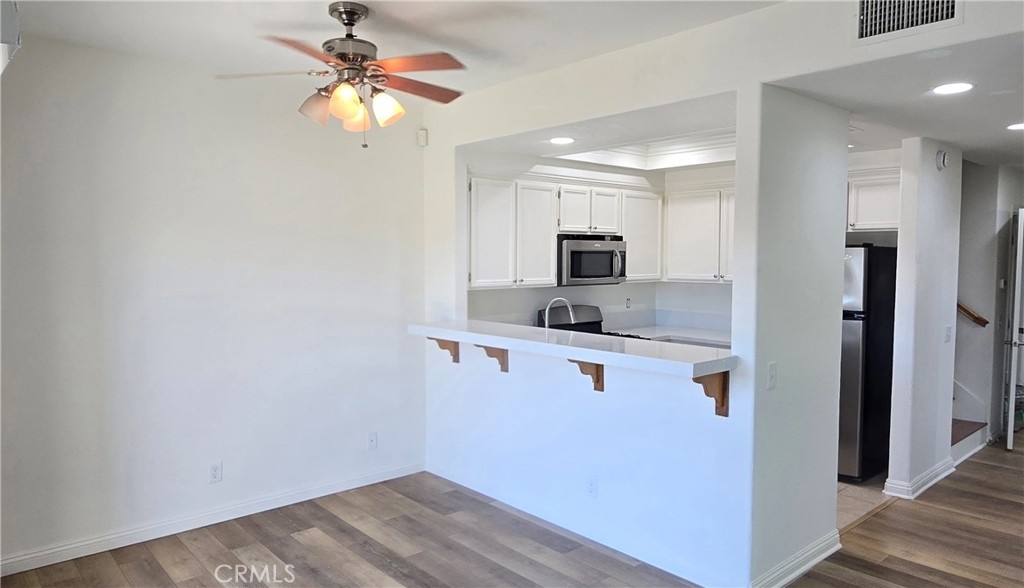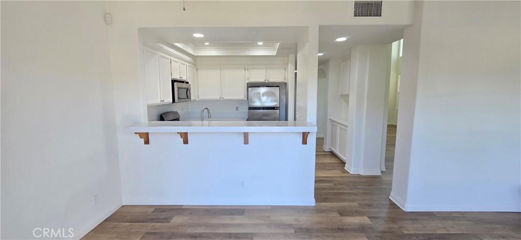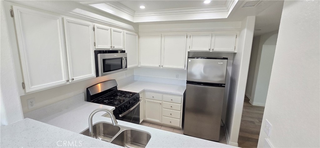 Beautiful Condo in the Altia Community. This three bed, two and half bath condo includes high entry ceilings lined with dramatic tall windows for a grand entrance. Nice kitchen with newly installed crystal style countertops, bar stool countertop and updated fixtures. The living room has a chimney with newly installed crystal face and plenty of space to gather and entertain. The master bedroom is spacious and easily accommodates a queen or king size bed with walk-in closet and ensuite bathroom. The master bathroom includes dual vanity sinks, oversized tub with separate shower and newly installed light fixture. Bedrooms two and three have hard floors with good closet space lined with multiple windows that let in plenty of natural light. There's a 2 car garage with washer/dryer hookups. Hard floors and recessed lighting throughout and HVAC system to stay comfortable year round. Easy Access to 91, 15 and 71 Freeways. Located blocks away from McKinley Crossroads Retail/Shopping Mall and abundant Restaurant, Food and close by retail options. Less than 5 miles from Corona Regional Medical Center and Metrolink Station. Walking distance to Parkview Park and close to Hidden Valley Golf Club.