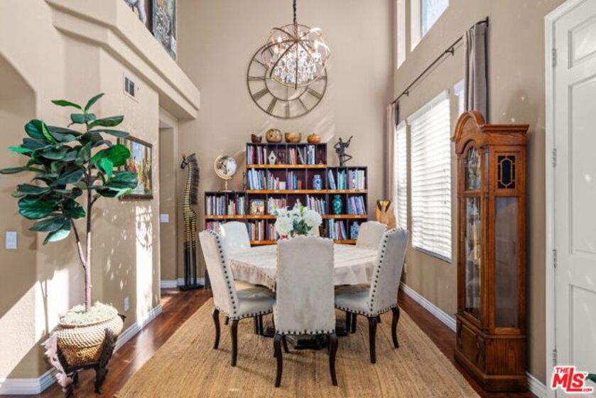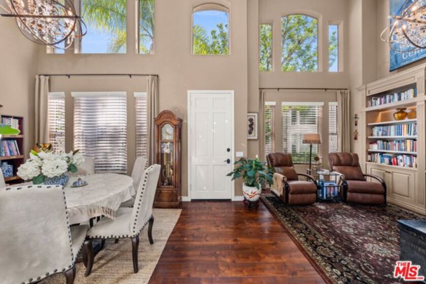 MAJOR PRICE IMPROVEMENT! Welcome home to this stunning 3-bedroom, 2 1/2-bath End unit townhome in Corona Ranch, offering modern comfort and stylish design. This home has been tastefully remodeled, luxurious bathrooms, designer fixtures and beautiful flooring, enhancing the spacious, elegant layout. The entry, dining room, and library boast dramatic two-story ceilings, creating a welcoming, open, and airy atmosphere filled with lots of natural light. The cozy family room features a gas wood-burning fireplace, perfect for relaxing. The library is enhanced with custom built-in bookshelves and elegant chandeliers, creating a sophisticated reading and entertaining space. The beautifuly remodeled kitchen includes a generous pantry. Enjoy the privacy of this end unit with a private entrance and a charming wrap-around outdoor patio that is partially covered and offers spacious views. There is plenty of space to start your own garden. The outdoor area features its own separate entrance. Located in a beautiful community with a sparkling pool, this home is close to scenic golf courses, parks, houses of worship, top-rated schools, and major transportation hubs including Ontario Airport and John Wayne Airport. Easy access to the 91 and 15 freeways, and less than 5 miles from Corona Regional Medical Center and Metrolink Station. This beautiful townhome combines comfort, style, and is conveniently located to great shopping and restaurants in a desirable neighborhood.