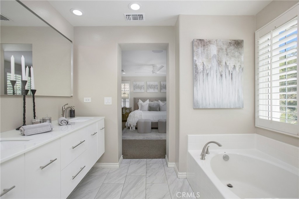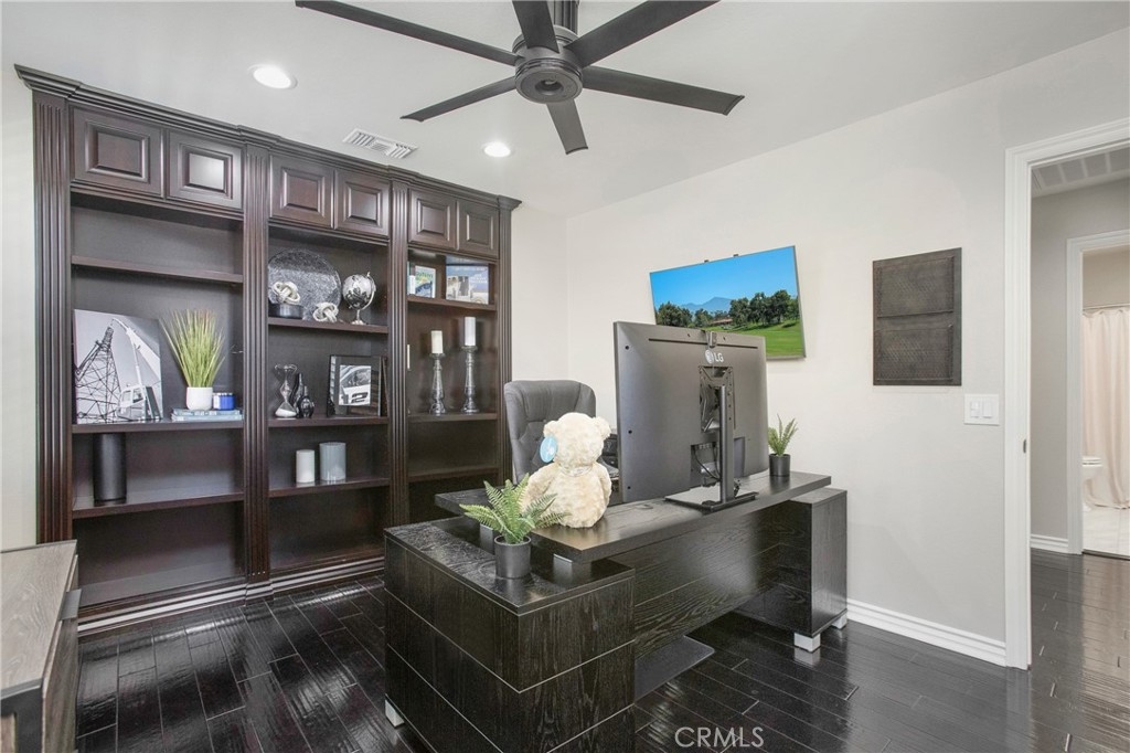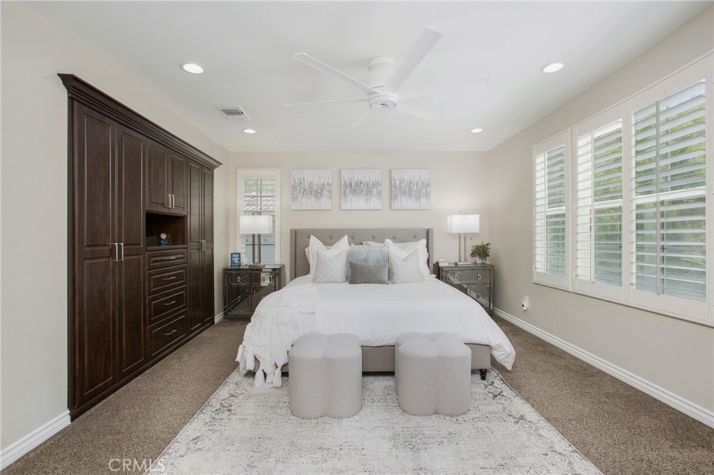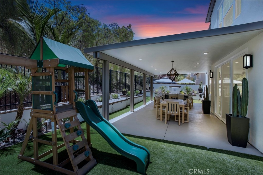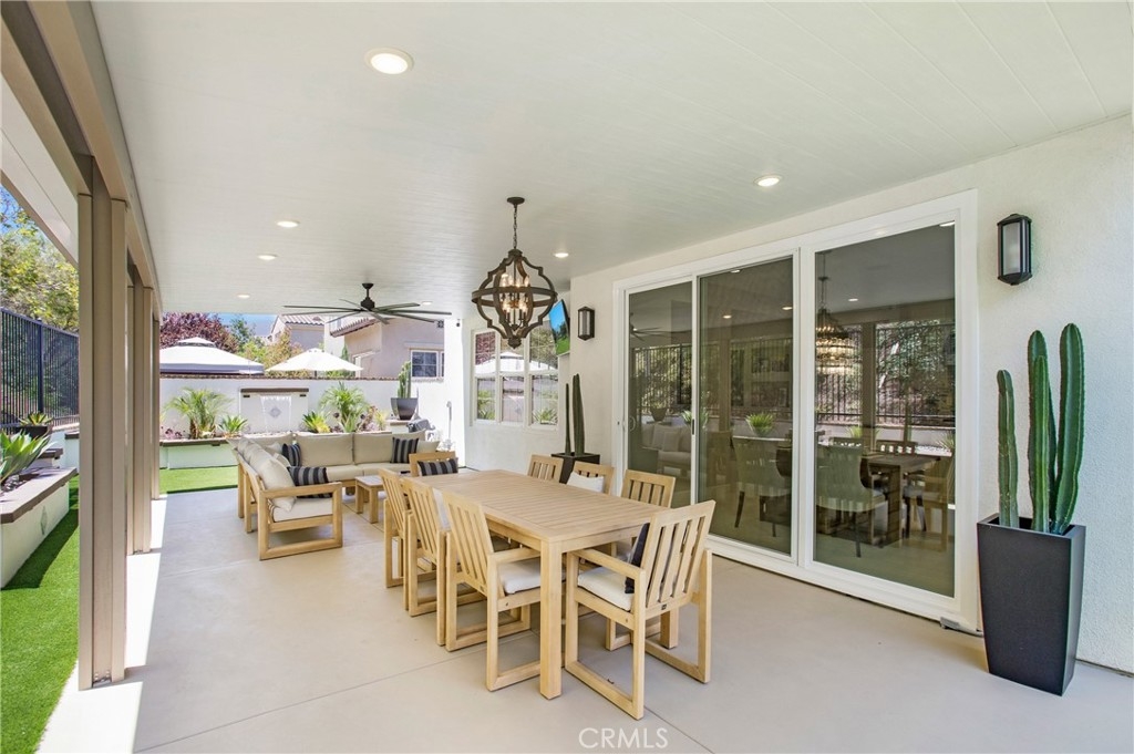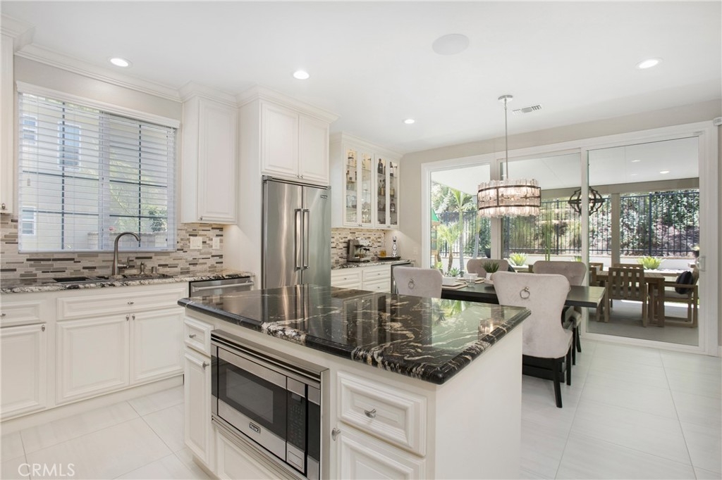 Welcome to the Dos Lagos area – where elevated design meets everyday ease. Tucked into one of South Corona’s most desirable neighborhoods, the Citrus Springs Community this home isn’t just a property—it’s a lifestyle statement. Upon entry, you’re embraced by natural light pouring through large windows, a flowing open floor plan, and thoughtful touches that elevate the everyday. The chef’s kitchen is both a showpiece and a high-performance space—featuring Viking appliances, an oversized 8-burner stove, a walk-in pantry, custom cabinetry, and show-stopping veiny countertops set against a striking backsplash. It opens seamlessly to the dining area and bar, complete with built-in cabinetry and a nearby built-in wine fridge—designed for effortless gatherings. Recently remodeled, the living area now boasts a modern electric fireplace, while the dining area features upgraded sliding doors and uninterrupted views of the backyard—where indoor-outdoor living comes to life. Transition into the outdoor living space and enjoy a designer-inspired setting with a new laminated patio cover, built-in speakers, an oversized ceiling fan, and a dramatic chandelier. A custom modern fountain sets the tone, while turf provides a safe play area for little ones. Whether it’s wine with friends or dinner al fresco with family, the backyard was curated for connection. Inside, the main floor offers a full bedroom and bath—perfect for guests or multi-generational living. Upstairs, you’ll find three additional spacious bedrooms, two full bathrooms, and a dedicated laundry room. The primary suite is generously sized for a king bed and includes a walk-in closet and private water closet. Additional upgrades include a newer oversized AC unit with added vents, surround sound throughout, oversized ceiling fans, plantation shutters, a newer water heater, upgraded garage door, and fresh interior and exterior paint. Even the landscaping—front and back—has been recently refreshed. This isn’t just a home—it’s the one you’ve been waiting for. And in Dos Lagos, homes like this don’t come often.