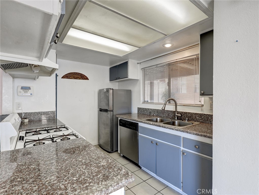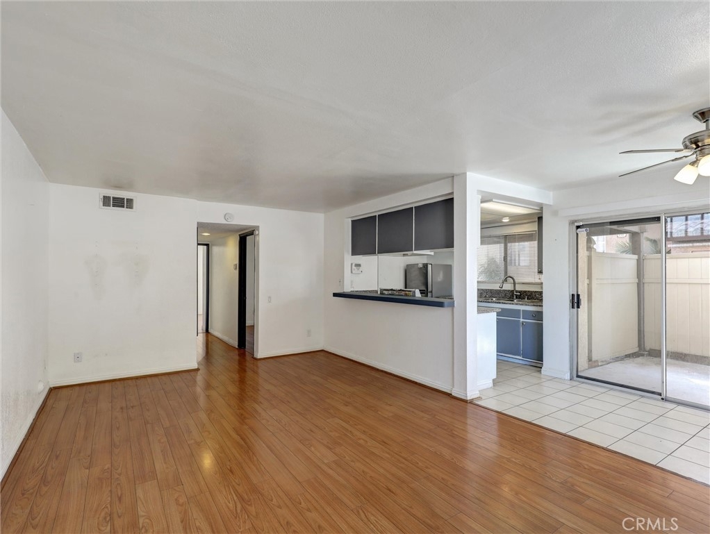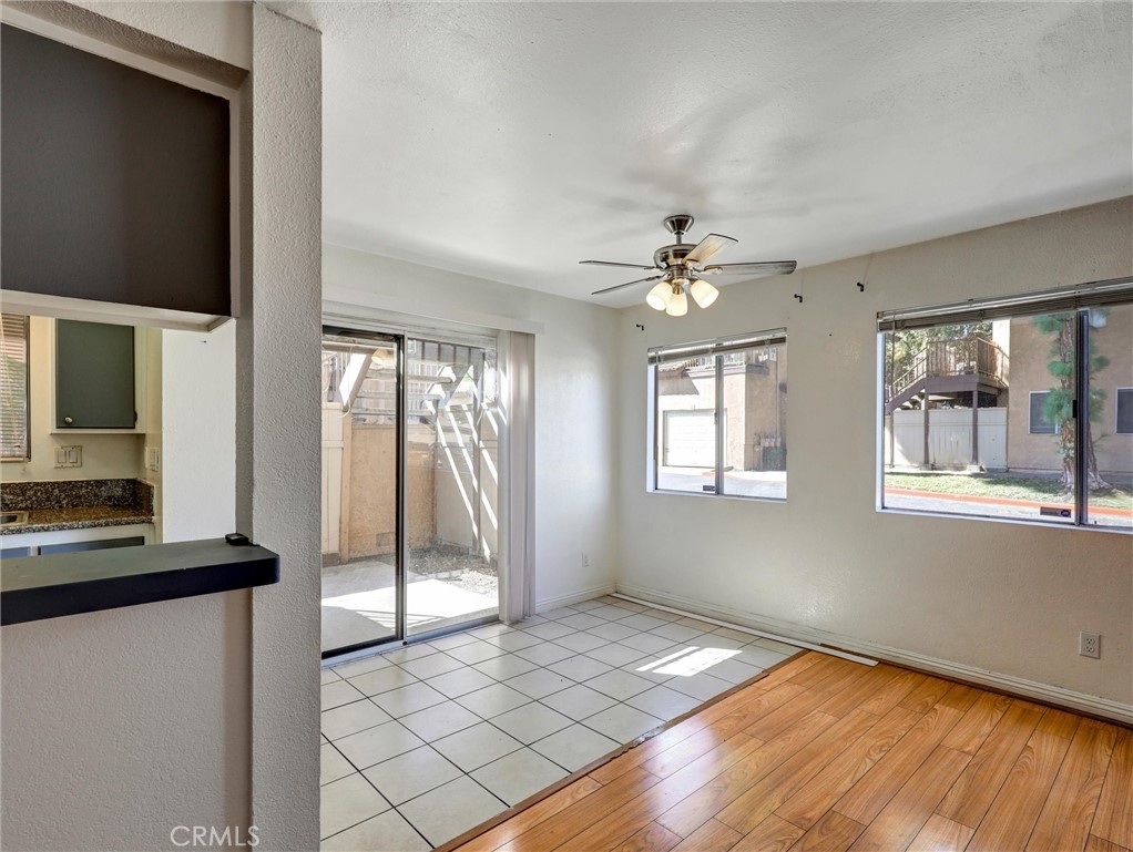 Situated in a gated complex, this two bedroom, two bathroom unit is the largest floorplan in the community. The downstairs corner location with two private enclosed patios makes it great for pets and family gatherings. The kitchen has granite counter tops and includes a stainless steel refrigerator. The laundry room and community pool are nearby. Unit includes a one gar garage and assigned parking spot. HOA Dues include water and trash to help keep your monthly bills down. Located close to the 91 and 15 freeways.