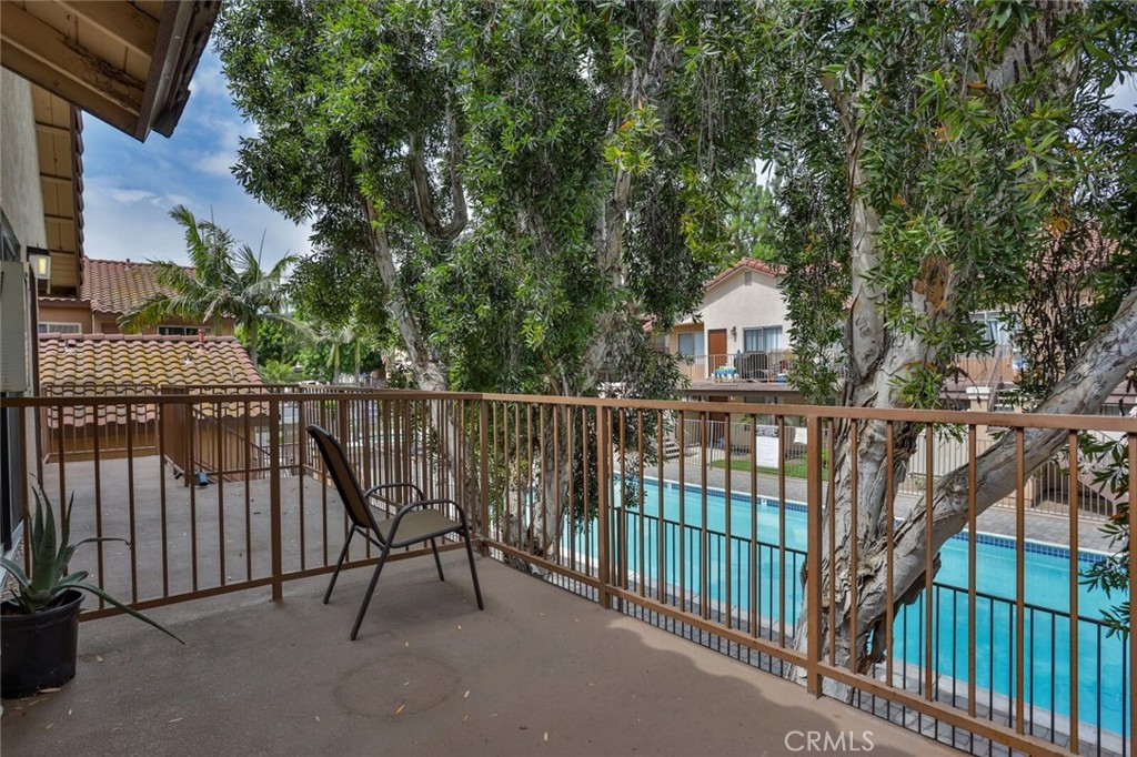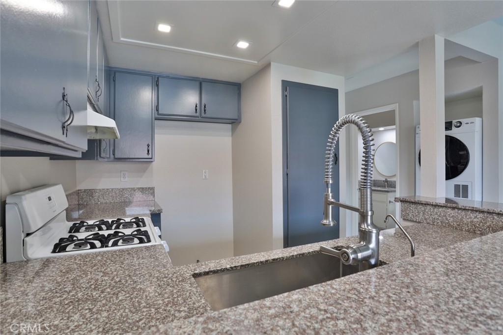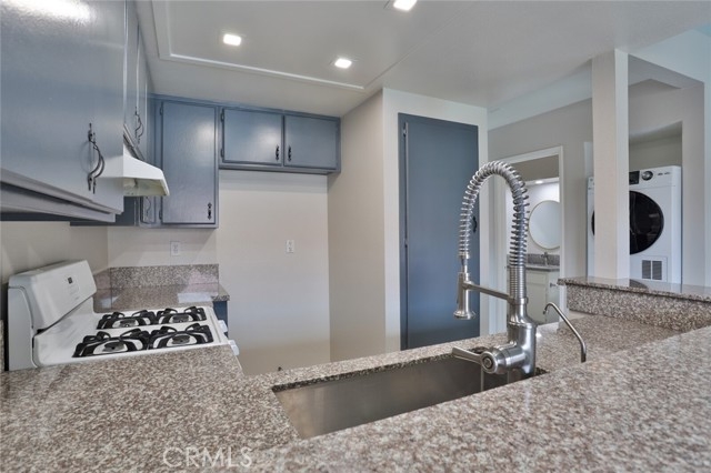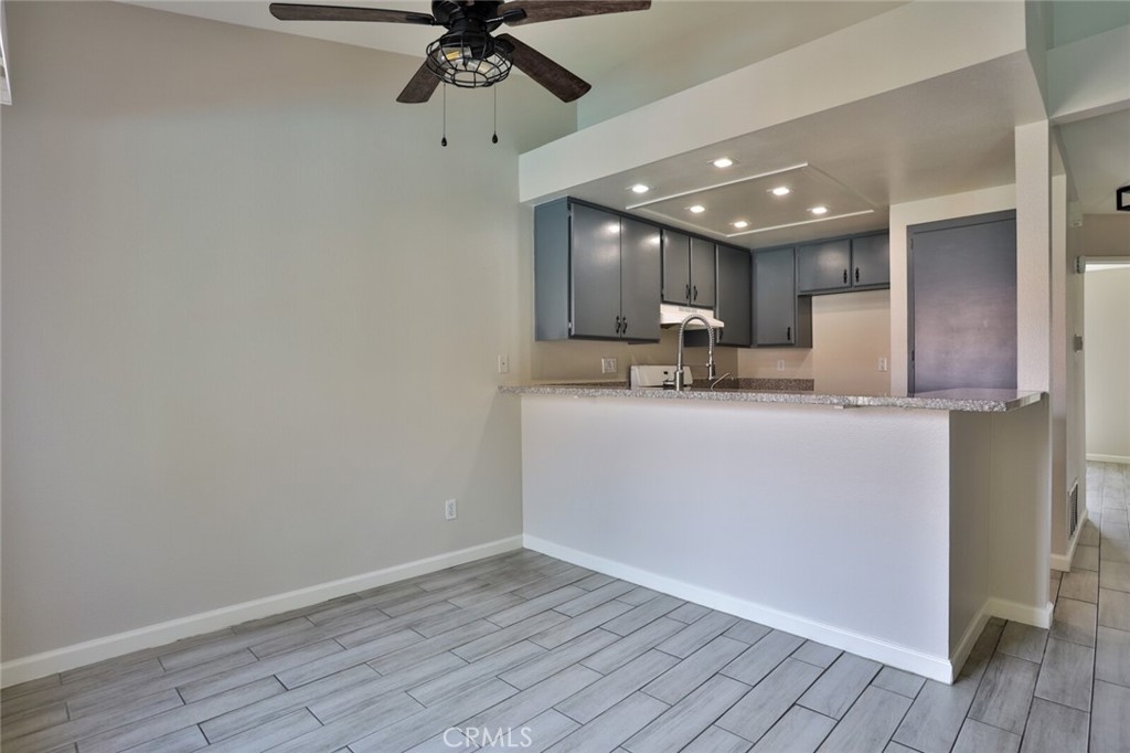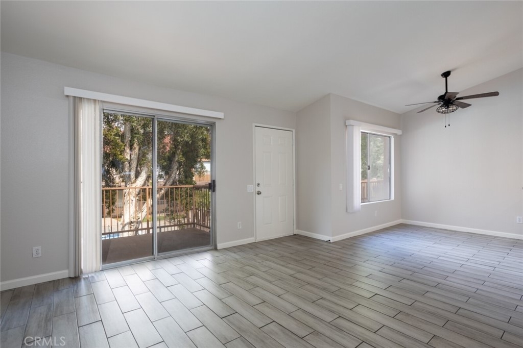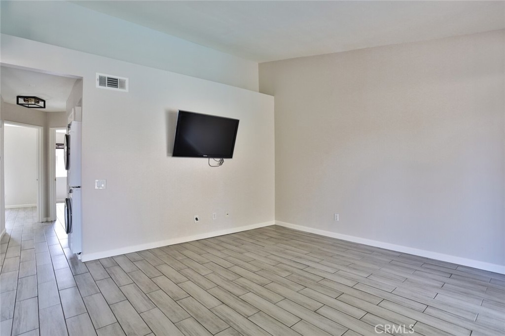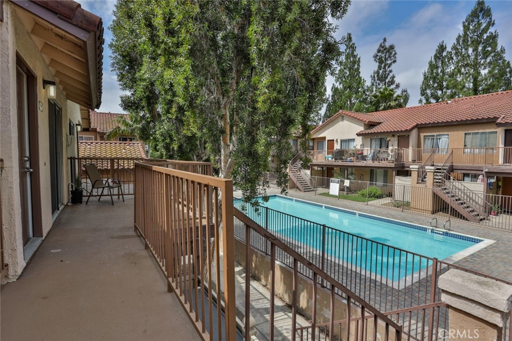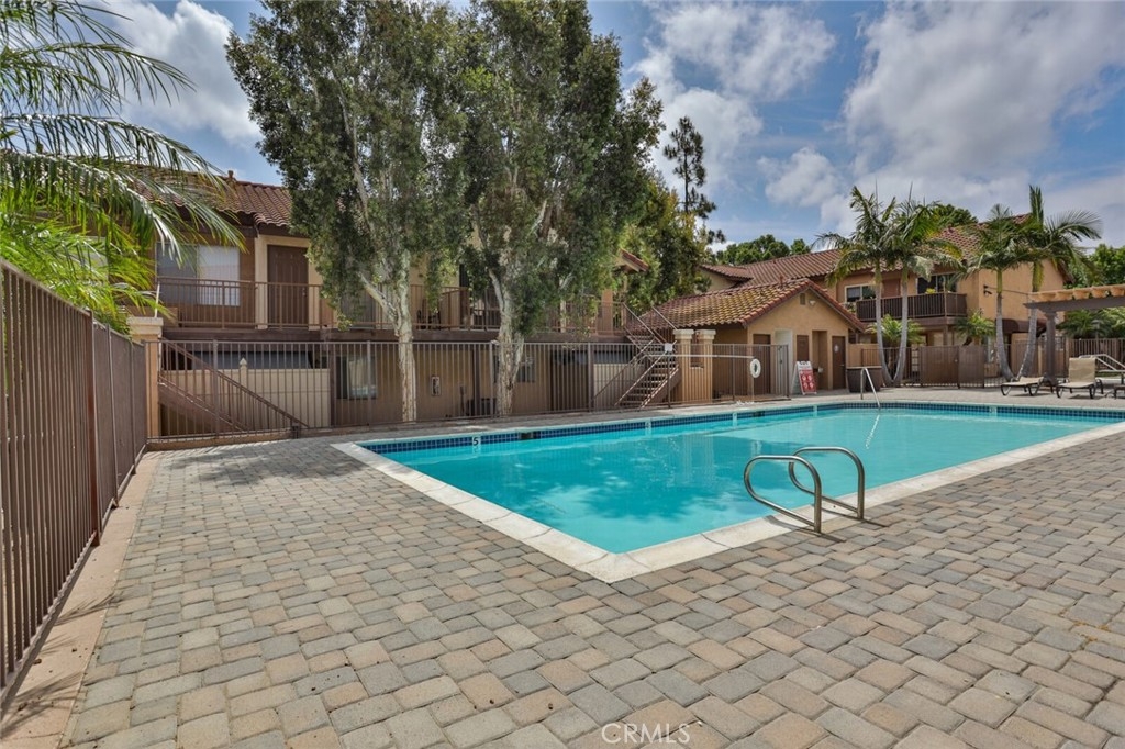 Welcome to Your New Home! This Unit has been freshly painted including the Grey kitchen cabinets. Upon entering this light, bright and Airy Home you will step onto the Designer Grey Vinyl wood like flooring. This Home opens to a large living room with an additional area for your Dining set. In the Living Area a Large Screen TV is being offered with this Stunning Home. One of the main features of this home is that it has it's own washer and dryer which also are being offered. The Beautiful and Freshly painted kitchen and cabinets also have Granite Counter Tops . The Guest bath also has granite counter tops as well as the Master Suite bath. Looking to relax well just sit outside on Your patio, grab a beverage and gaze out over the Sparkling Pool and Spa or pop down and take a swim or just hang out in the Spa! There is also a rear Patio off of the bedroom. The Private 1 car Garage has been freshly painted and is only steps away from your home and there is also a secondary parking spot assigned to this unit. For those who need to Communite this is the perfect location as it is situated freeway close to the 91 and 15 freeway! Make this Comfortable and Quiet Condo Yours Today!