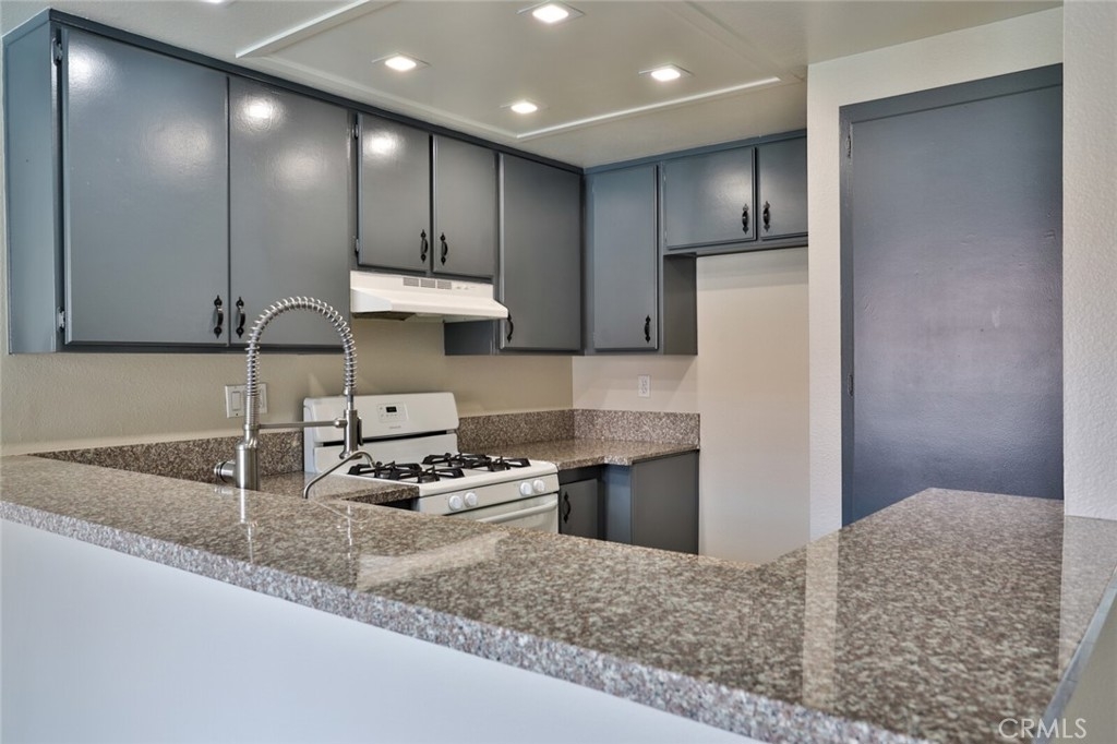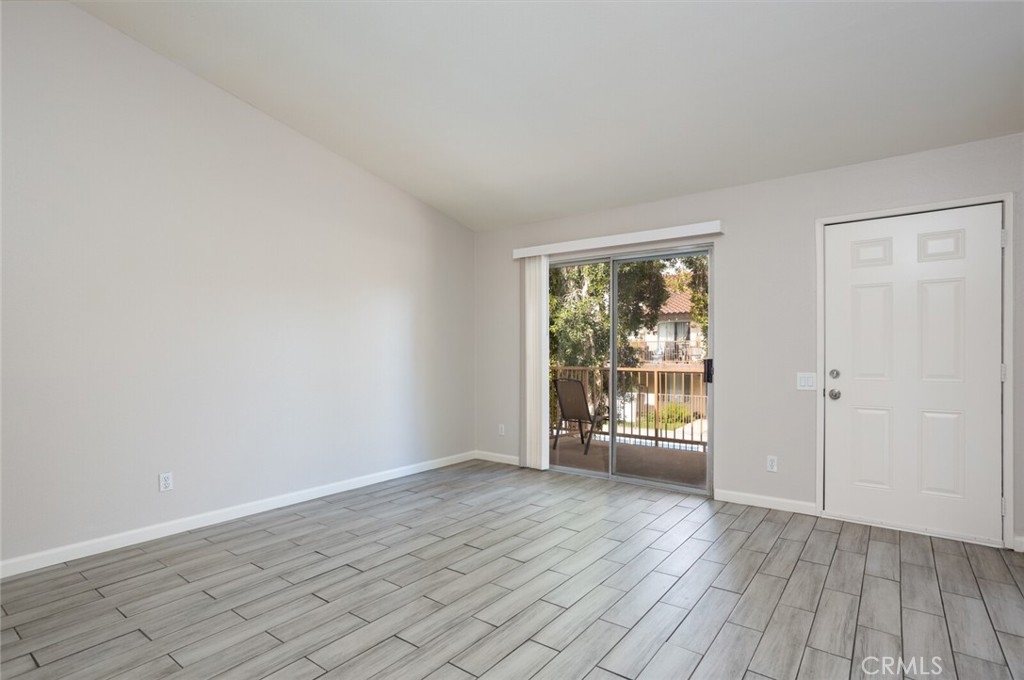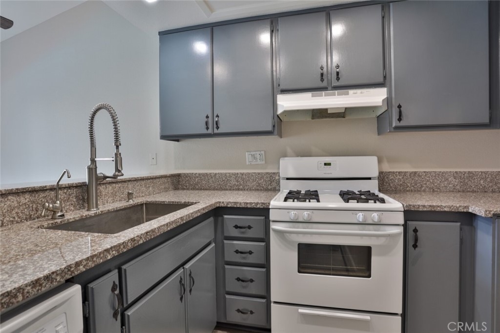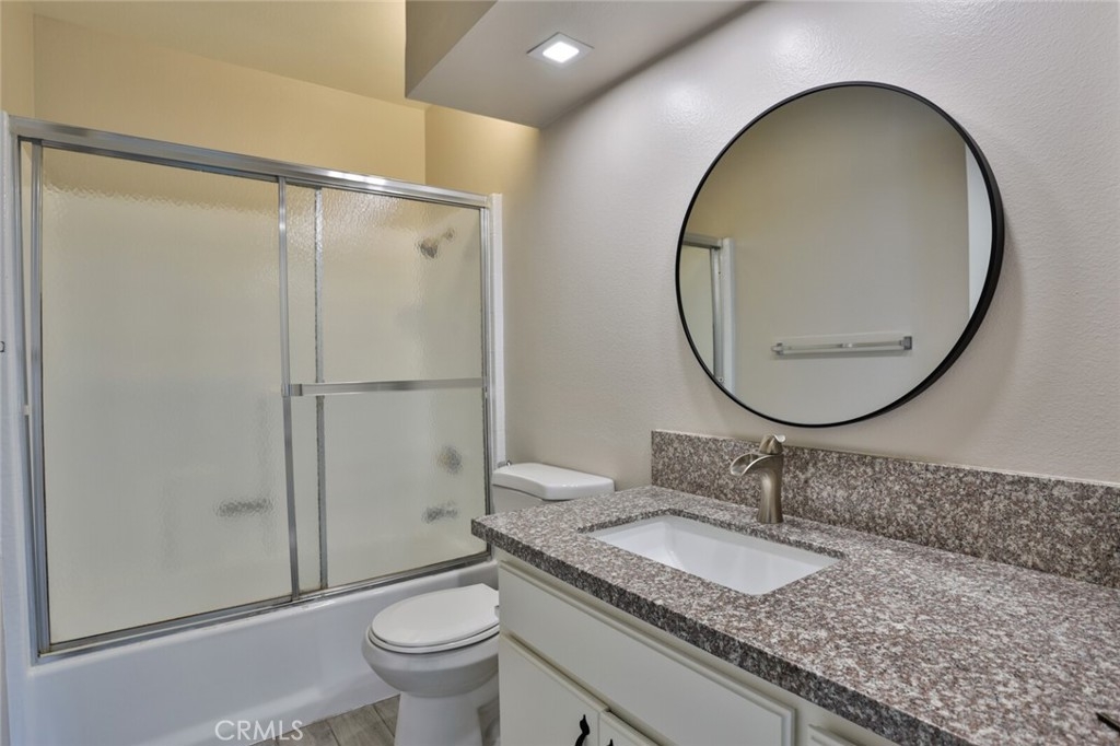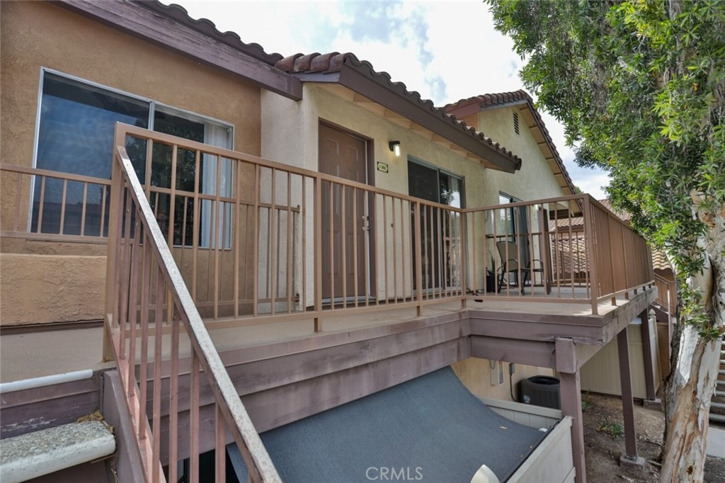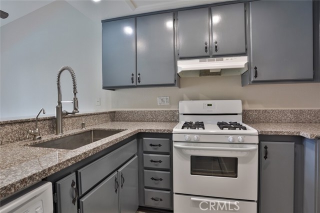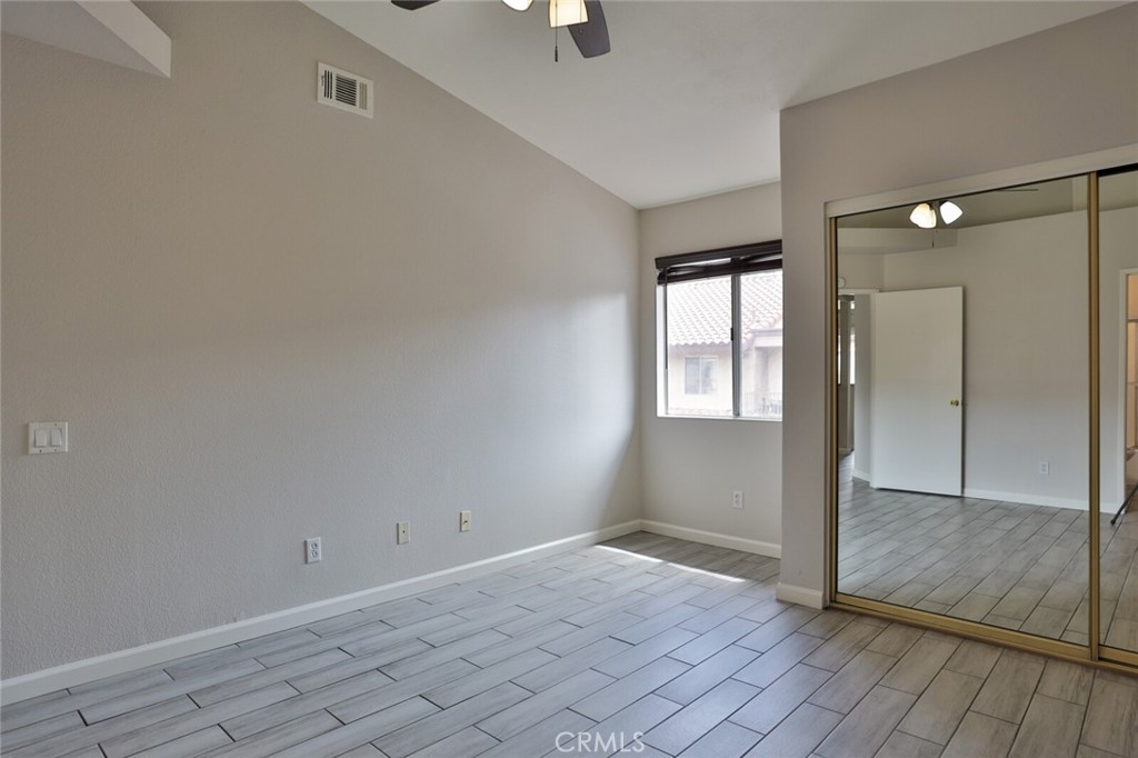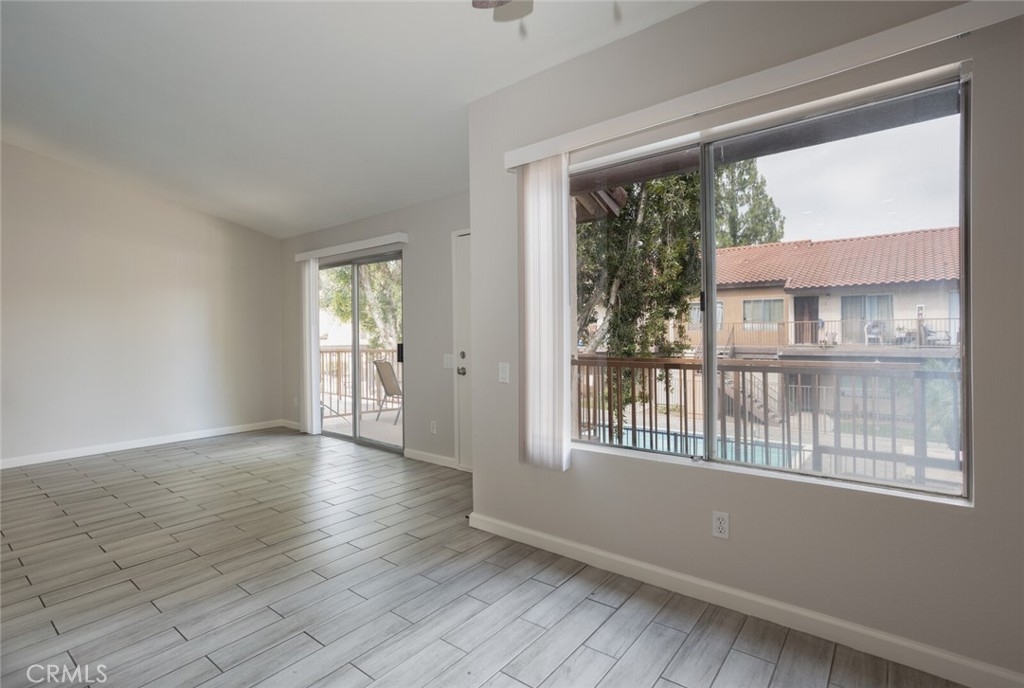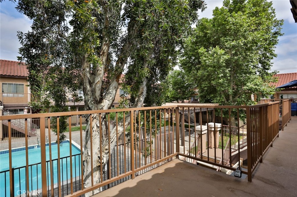 Welcome to Your New Home! This Unit has been freshly painted including the Grey kitchen cabinets. Upon entering this light, bright and Airy Home you will step onto the Designer Grey Vinyl wood like flooring. This Home opens to a large living room with an additional area for your Dining set. In the Living Area a Large Screen TV is being offered with this Stunning Home. One of the main features of this home is that it has it's own washer and dryer which also are being offered. The Beautiful and Freshly painted kitchen and cabinets also have Granite Counter Tops . The Guest bath also has granite counter tops as well as the Master Suite bath. Looking to relax well just sit outside on Your patio, grab a beverage and gaze out over the Sparkling Pool and Spa or pop down and take a swim or just hang out in the Spa! There is also a rear Patio off of the bedroom. The Private 1 car Garage has been freshly painted and is only steps away from your home and there is also a secondary parking spot assigned to this unit. For those who need to Communite this is the perfect location as it is situated freeway close to the 91 and 15 freeway! Make this Comfortable and Quiet Condo Yours Today!