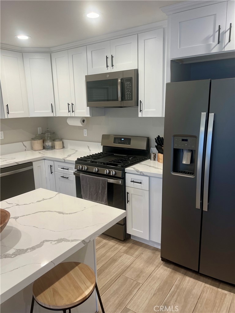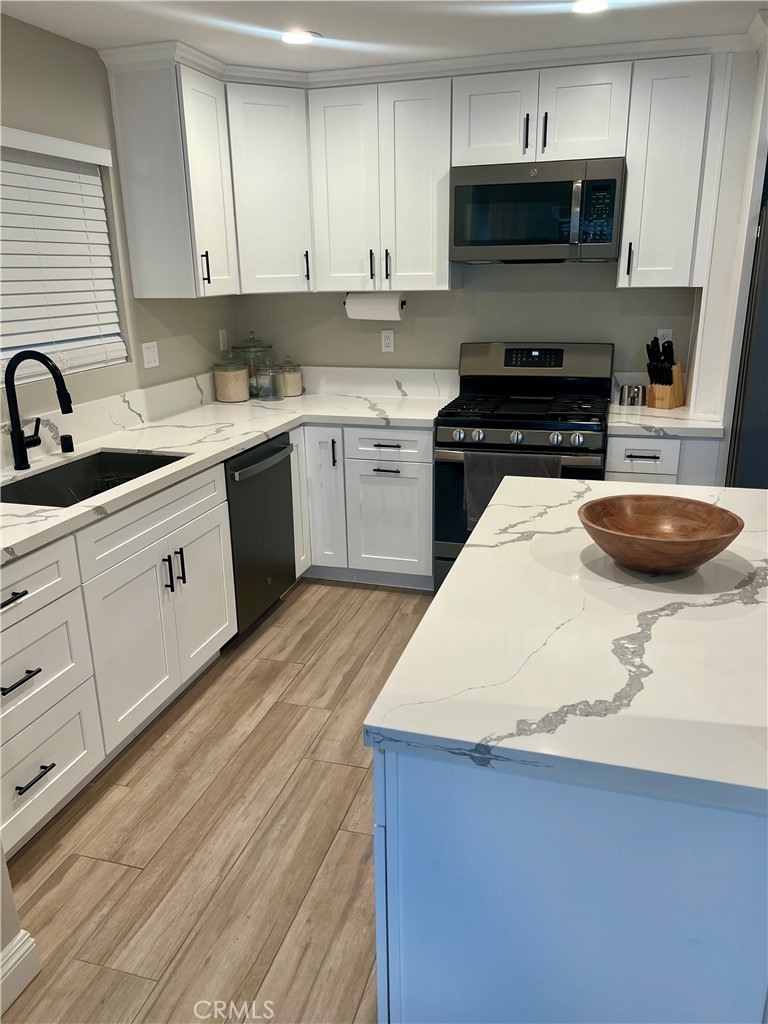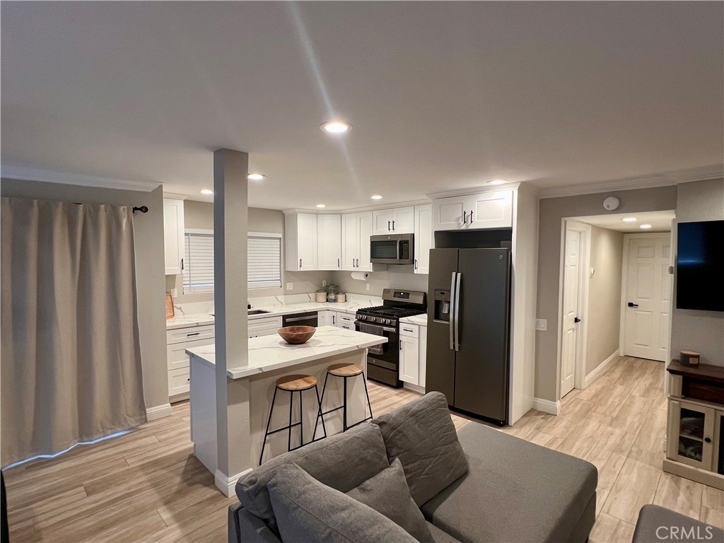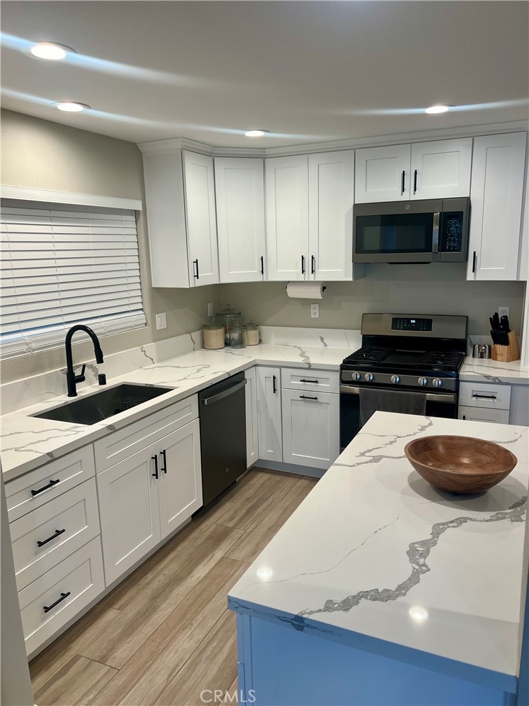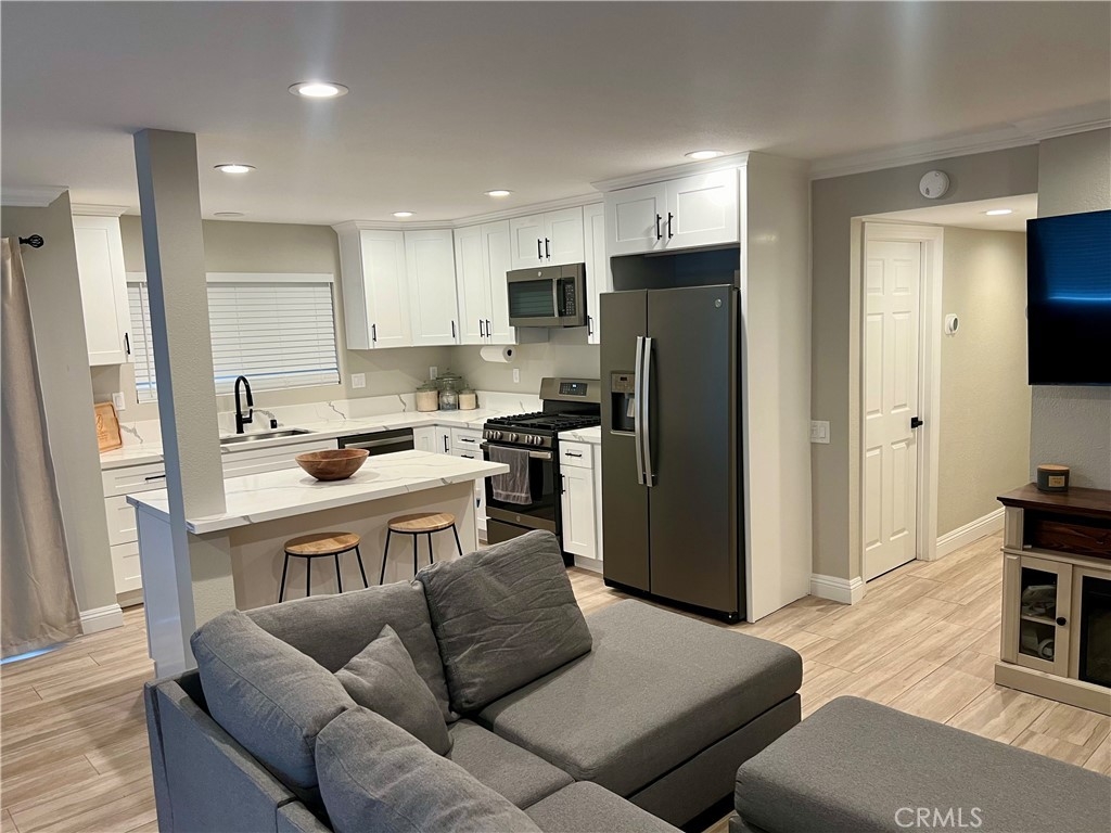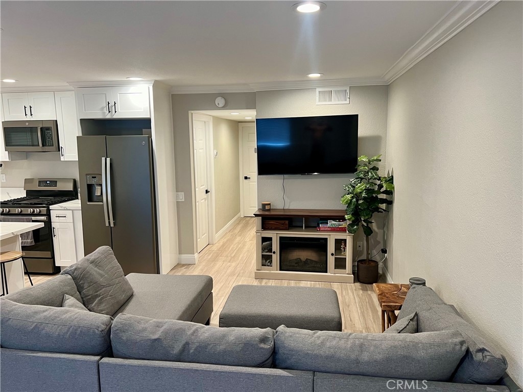 Welcome to this beautifully renovated 2 bedroom, 2 bathroom corner unit condo located in the convent and vibrant city of Corona, California. This charming condo has been meticulously updated to offer a modern and comfortable living space for its occupants. Upon entering, you are greeted by a spacious living room that flows seamlessly into the dining area and kitchen. The kitchen features sleek countertops, stainless steal appliances, and ample storage space making it perfect for cooking and entertaining. The two bedrooms are generously sized, with the primary bedroom boasting an ensuite bathroom for added privacy and convince. There is a one car garage attached with washer and dryer hook - ups. Additionally there is one parking spot. Situated in a prime location in Corona, this condo provides easy access to shopping centers, restaurants, parks, and major highways for convenient commuting. With its contemporary design, convenient location, and desirable amenities this newly renovated condo is the ideal place to call home in Corona, Ca.