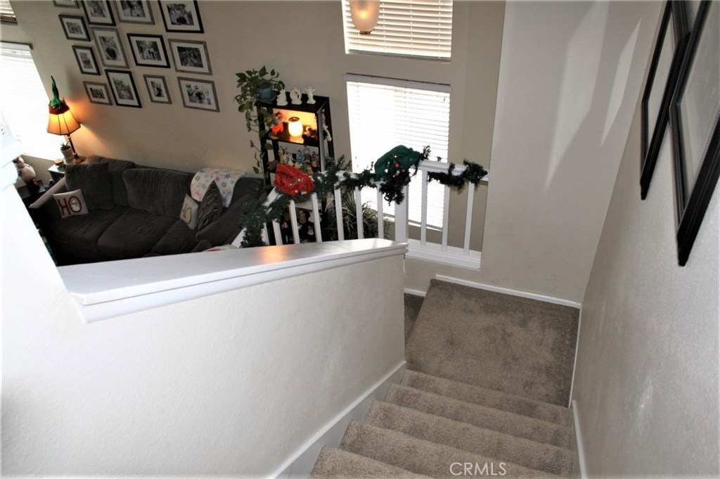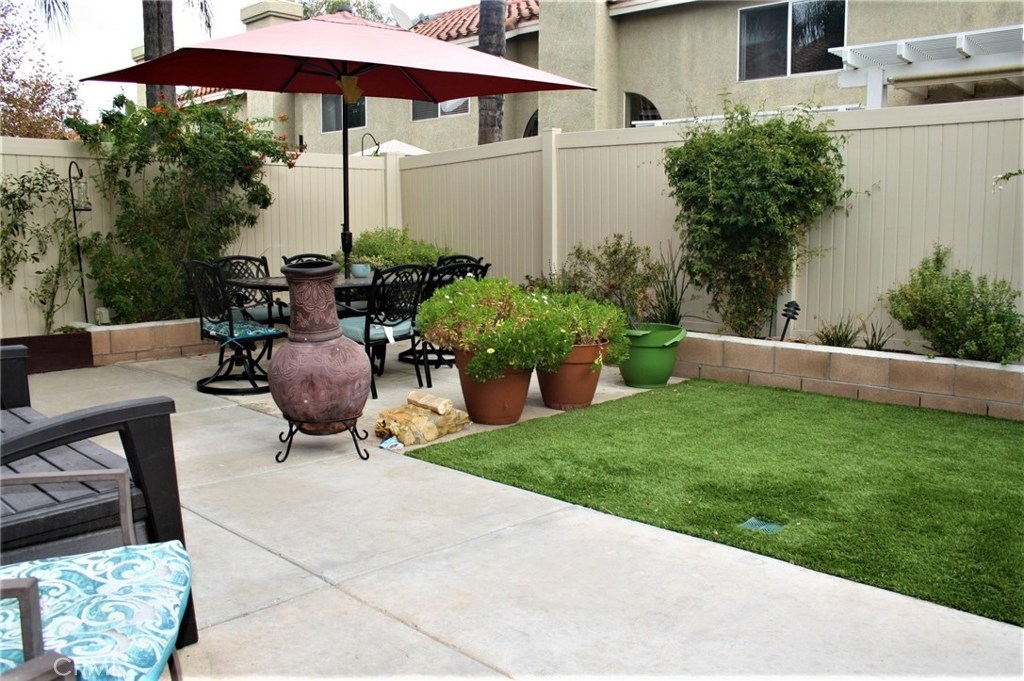 Beautiful end unit located in the best area of Corona. Wide Open living area with vaulted ceilings downstairs and a 1/4 bath. This home features Smart Home Technology to use with google or your phone. Turn on your lights and thermostat with a touch of your phone or voice. This home comes with an indoor laundry and being an end unit you have private gated access to your backyard. The private entry along with the laundry inside and waste receptacles in the backyard allows more space and better usage of the garage. Entertainers backyard with artificial turf and hook ups for your outside TV to have movie night under the stars. The numerous citrus trees are a great addition and a rare find. Kitchen has stainless steel appliances and granite counters, outdoor vinyl fencing. Master bedroom also has vaulted ceiling for a spacious feeling.