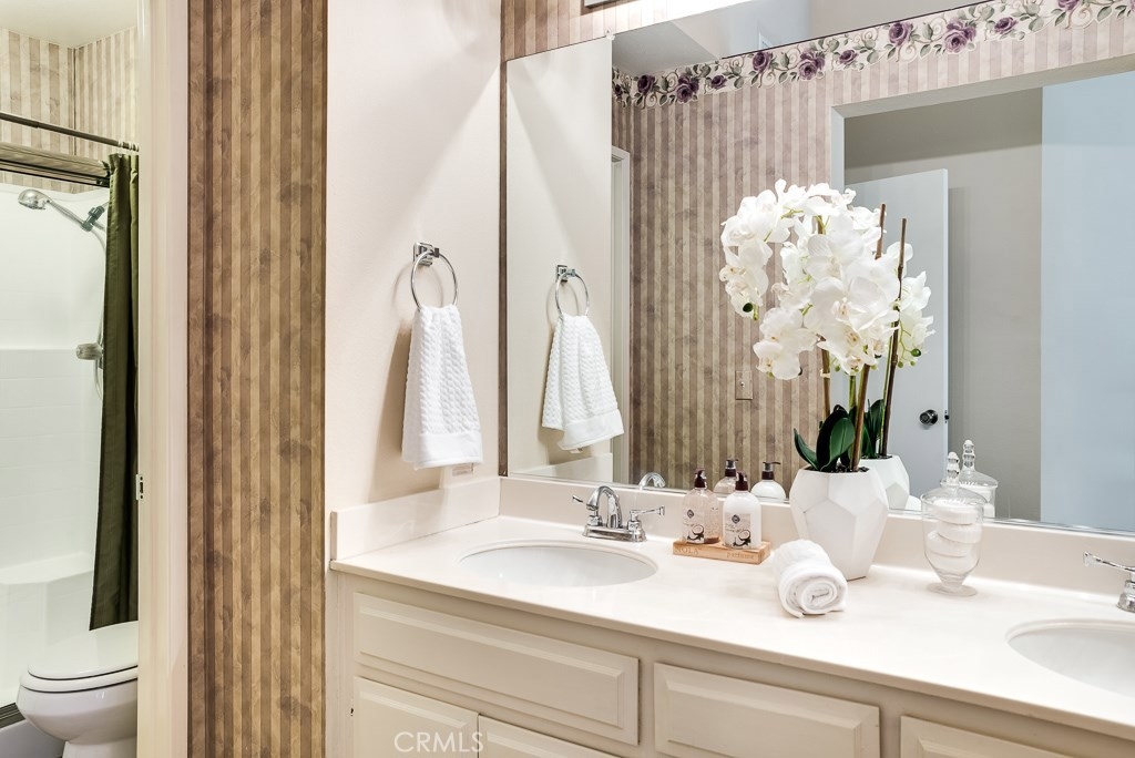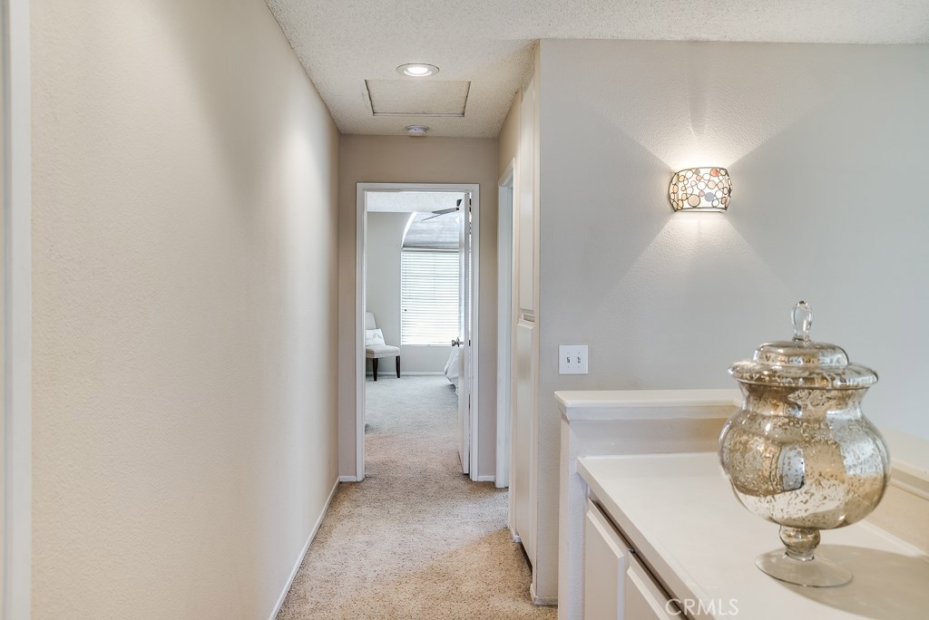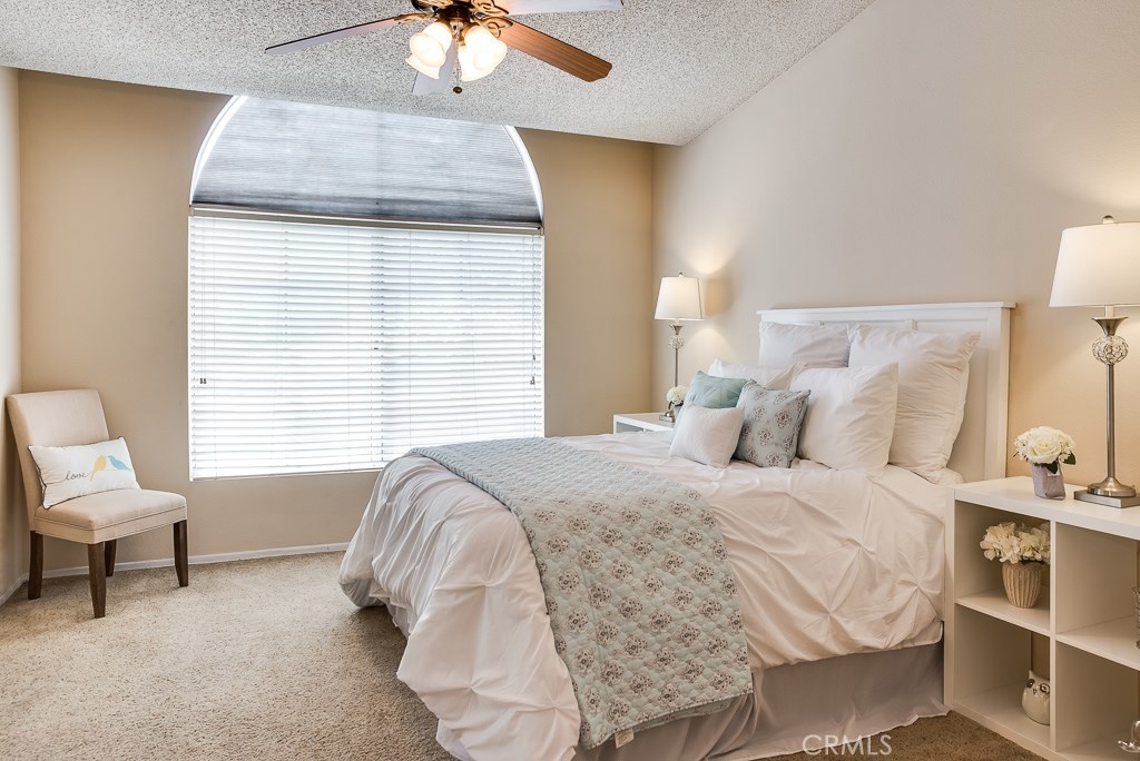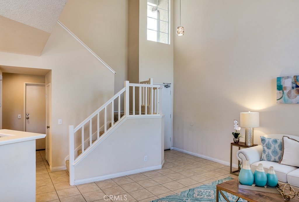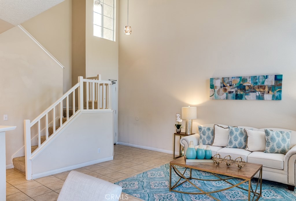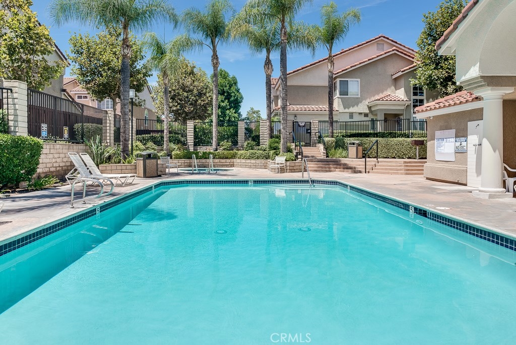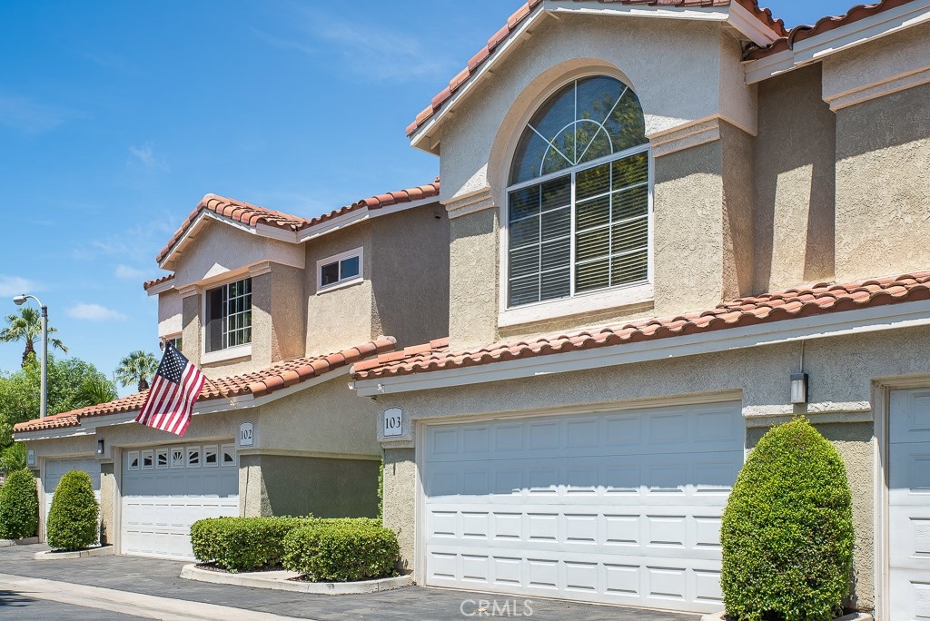 Welcome home to your beautiful Cortina condo! Back on market and better than ever! New Designer Lighting Fixtures installed in entry, dining area, and stairway. Ceiling Fans in Master and 2nd Bedrooms. The 2nd Bedroom is currently used as an office but can easily be converted back to a bedroom or also makes a great TV or gaming room. The Master Bath features dual sinks. The 2 car garage has direct access to the home. Mature Sago Palm, Giant Bird of Paradise, and a fruit bearing lime tree surround the rear yard patio, which has plenty of space for a good sized patio table at which to host BBQ gatherings & entertaining. The unit enjoys the best of all location amenities within the complex, close to pool & clubhouse but not in direct exposure, close to extra guest parking, and on a private cul-de-sac street within the complex. No one above or below and walking distance to Centennial High School + easy access to 91 & 15 freeways + every shopping center & urban amenity an easy drive nearby. Hurry on over, this one won't last!