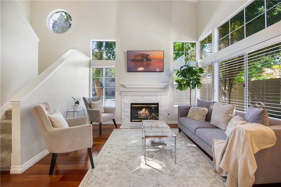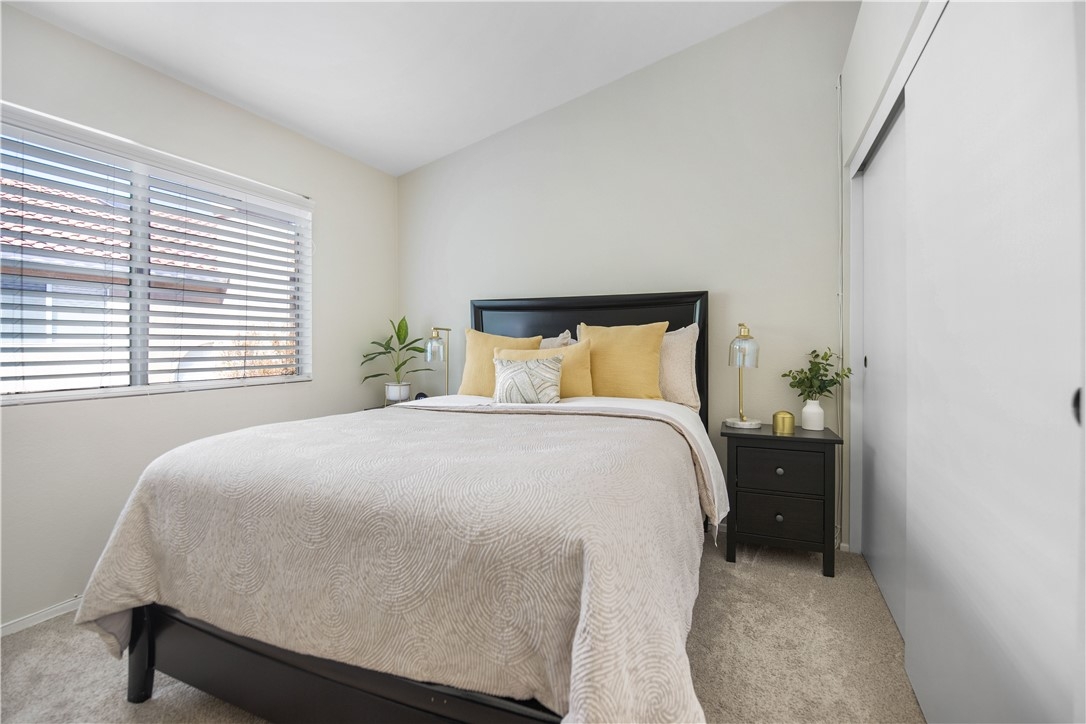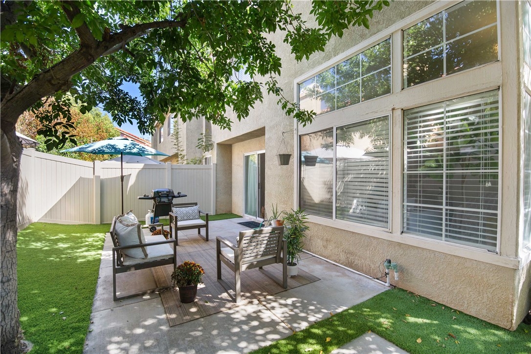 Absolutely Gorgeous End Unit Condo In The Very Desirable Cortina Community. Natural Light, Bright, Airy and open Floor Plan. Vaulted Ceiling in Living Room with a Upgraded Stone Fireplace.. Kitchen Open to Dining and Living Room with Upgraded Stainless Appliances and Light Stone Counter Tops and a View of Backyard Perfect for Entertaining and Family Holiday Gathering. The Dining Area opens to the Beautifully Eco Friendly Landscaped yard with a Side Gate and Trees that offer shade and a breeze during those hot Fall days. Enjoy the Association Pool and Club House within a short walk from this Beautiful Private Backyard. This Wonderful Unit has 2 Bedrooms and 2.5 Baths.The Large Master Bedrooms offer a Walk in Closet, Plush Carpet and plenty of Natural Light with a Remodeled Master Bath Tub/Shower Combo, Dual Sinks Vanity and Tile Flooring.The Secondary Bedroom Overlooks the Backyard with room for a Queen Size Bed and more. Secondary Bath is steps away. There is a Two Car Attached Garage with Laundry and room for storage. All of this Centrally located in Corona, with Low Property Taxes and Close to everything makes this a property you don't want to miss!