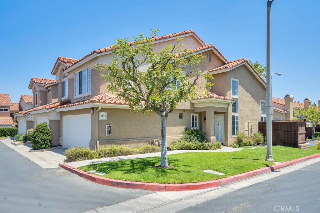 Distinctively upgraded and privately located home in the Cortina Community of Corona. Pride of ownership and attention to the details, a highly desired cozy concept layout with the family room, dining area and kitchen is nicely laid out great room concept downstairs with fireplace, new laminated flooring and new light tone paint. There is a main floor bathroom, laundry room and nice comfy dressed patio area. The kitchen offers new countertops, new cabinets, new lighting fixtures and stainless steel appliances. There is direct garage access to the two car garage down a short hallway with ample storage space and new epoxy coating. Upstairs are the three bedrooms and two baths. The guest bathroom has new tub and shower with upgraded vanity and fixtures. Master bathroom is fully upgraded with new shower area, new fixtures. Ample natural light fills the home with brand new carpet, new paint, new light fixtures, and new closet. The resort-style common area amenities include swimming pools, spas, clubhouses and nearby parks and highly rated corona schools. Nearby are great dining, shopping and award-winning Corona schools. Come to enjoy all Corona has to offer. Don't miss this one as it is priced well to sell fast, check out the pictures and slideshow to appreciate.
