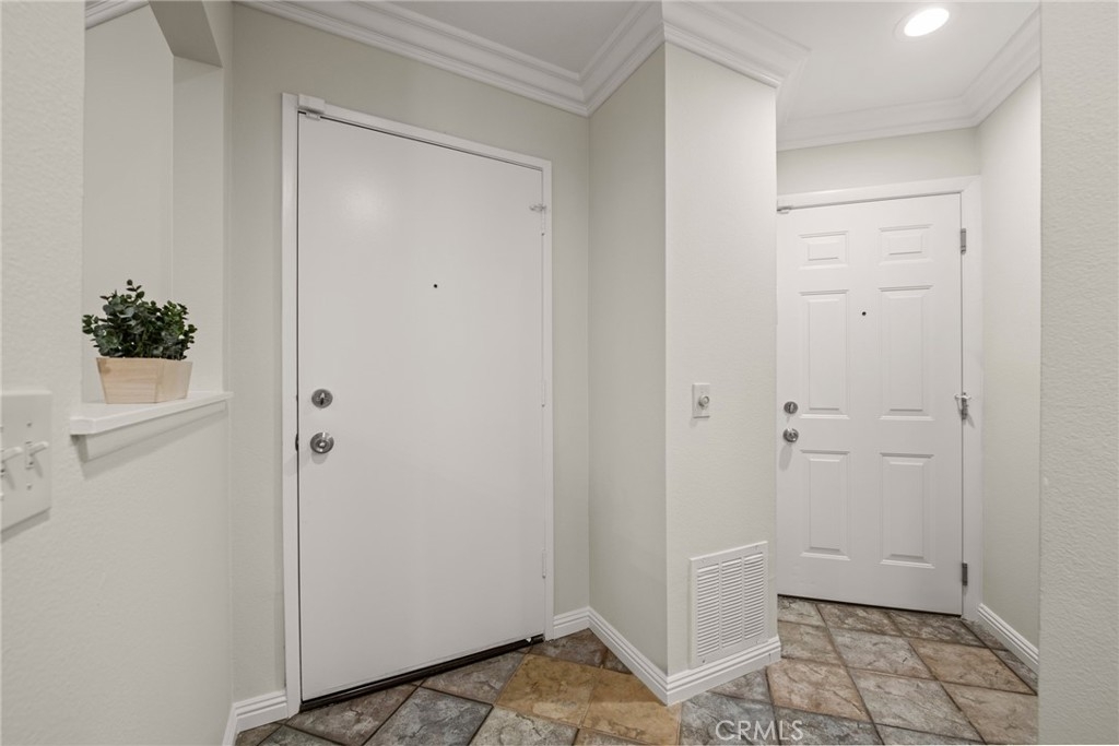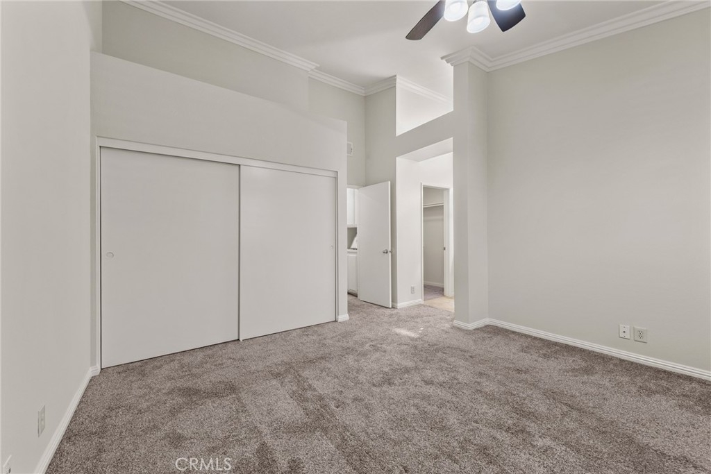 Cozy 3 bedroom townhome in the beautiful Cortina community near the junction of 15/91 FWY. Walking distance to Centennial High School. Stater Bros, El Super, Super WalMart, Sprouts, other shops and restaurants are just 2 minutes away. This lovely townhome has an open floor plan with soaring high ceiling. Living room leads out to a cute backyard with 2 mature fruit trees (sweet and juicy oranges and tangerines). Quartz counter top in kitchen with white cabinets and brand new sink. There is a large half bathroom located downstairs for convenience use . A large closet under the stairway where you can store all your Christmas decors. Upstairs you will find 2 sizable guest bedrooms and a spacious Master Suite with walk-in closet. Plantation shutters and crown moldings throughout the home. Dual pane windows and sliding door. Fresh new paint. Direct access to the 2 car garage and the laundry area. This unit is also a very short distance from the clubhouse, pool and spa area. Not to mention its affordable HOA and super low tax. Great starter home which you do not want to miss!!!