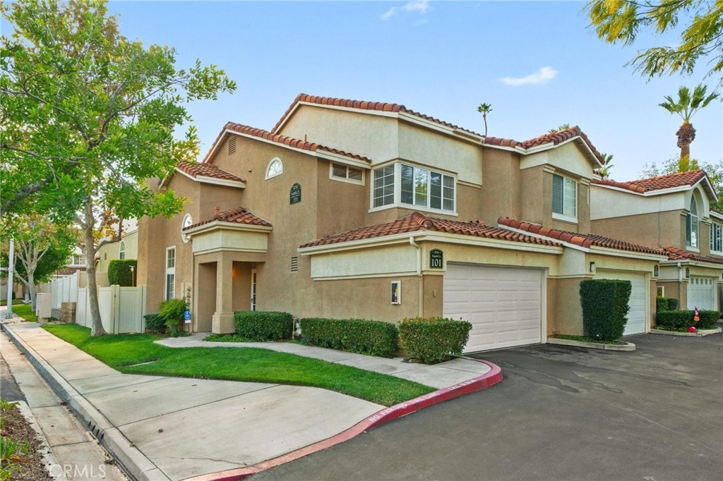Beautiful move in ready two story condo located in the Cortina community of Corona! This condo is near good schools, restaurants, shopping, easy freeway access and has termite clearance taken care of by the HOA. Offering nearly 1,200 square feet of living space including 2 bedrooms and 2.5 bathrooms. Upon entry you will be greeted by a right and airy atmosphere, neutral paint, laminate flooring and beautifully high ceilings! The half bathroom on the main floor is ideal for any guest use! The large family rooms features many windows providing ample natural light, a cozy fireplace and is open to the dining area! The kitchen showcases plenty of cabinet and counter space and a full backsplash! Upstairs you will find 2 bedrooms including the large master bedroom offering a generously sized walk-in closet and private bathroom with his and hers sinks. The backyard is landscaped to perfection and recently had brand new sod laid! Enjoy the many amenities the HOA offers such as pool, spa and clubhouse. This one won't last long, schedule your showing today!