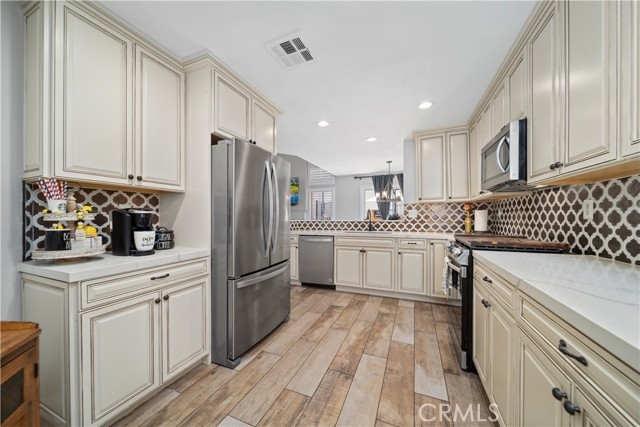 Back On The Market. Highly Motivated Sellers!!! Very Rare, Enchanting, And Immaculately STUNNING! No Expense Has Been Spared On This Highly Upgraded 3 Bedroom 3 Bathroom South Corona Property, In One Of Southern California's Most Desirable Zip Codes. Marvel At The Open Concept Living Area, High Cathedral Ceilings, Breathtaking Plantation Shuttered Windows Throughout, Updated Fireplace, Wood Like Stone Floor Throughout, Upgraded Top Of The Line Brass Fixtures Throughout. Beautifully Renovated Powder Room Complete With Quartz Counter, Wainscoting, Sink Vanity and Updated Fixtures. Elegantly Remodeled Chef's Kitchen Features Quartz Counters, Upgraded Custom Cabinets, Arabesque Tile Backsplash, Stainless Steel Appliances and Farm Sink. Breakfast Counter And Dining Room Are Just Off The Kitchen, Adjacent To the Fully Enclosed Backyard. Walk Upstairs To Find 3 Bedrooms And 2 Fully Updated Bathrooms, Bedroom One Down The Hall Offers Carpet Floor and Mirrored Closet Doors, Bedroom 2: Wood Plank Stone Tile & Large Closet Space, Gorgeous Fully Remodeled Bathroom Across The Hall, Includes Tiled Tub/Shower, Quartz Counters And New Fixtures. Generously Oversized Master/Primary Room That Offers Tall Ceilings, Spa Like And Unique Master Bathroom Features Double Sink Vanity, Marble Counter, Mosaic Marble Backsplash & Walk In Shower Tiled With Stone Imported From Europe. 2 Car Attached Garage, EV Charging Outlet, Washer/Dryer Hookups In Garage. Cozy Private Enclosed Backyard, New A/C. HOA Includes: Water, Grounds Maintenance and Exterior Building/Roof/Fence Maintenance HOA Amenities Include Pool, Spa, BBQ and Clubhouse. Located Close To 91 And 15 Freeways, Walking Distance to Centennial High School And Close To Shopping.