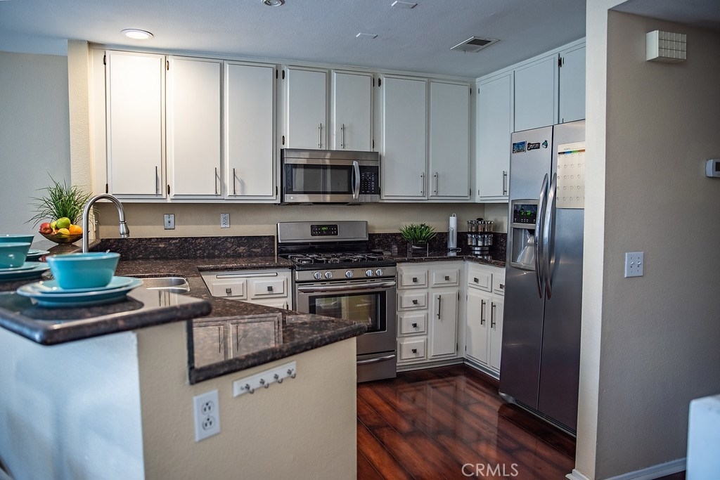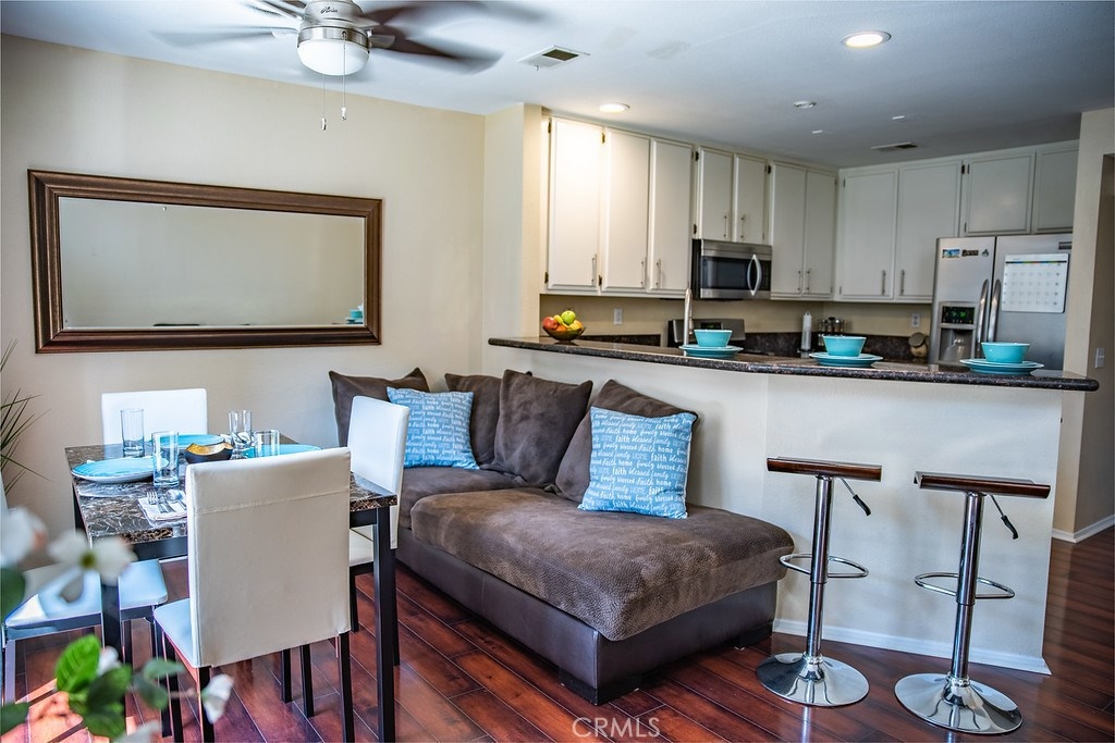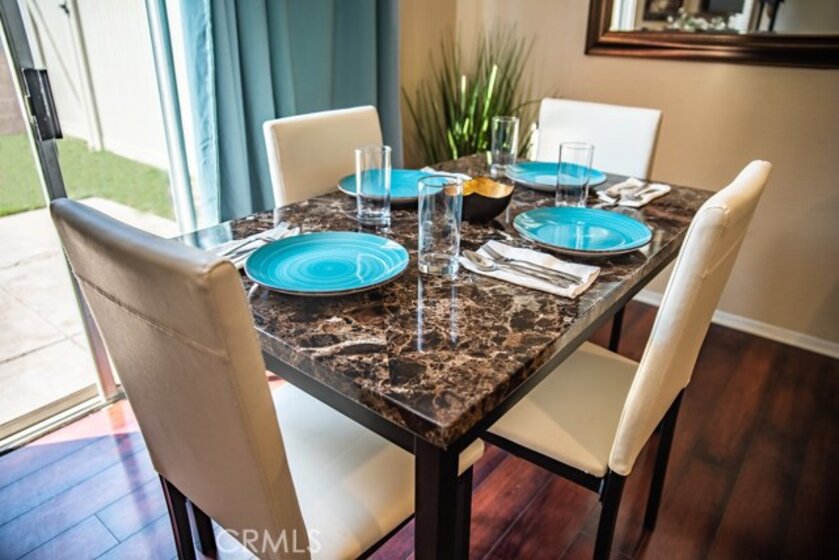 Centralized location with easy access to both 15 and 91 fwy and minutes from Dos Lagos Shopping. Gorgeous highly desirable upgraded 3 bedroom, 2.5 bath town-home in the Cortina Community. Light and bright location with lots of windows and vaulted ceiling. New laminate flooring throughout home. Beautiful kitchen with granite counters with stainless steel appliances INCLUDED, laundry room with Washer + Dryer also INCLUDED. Spacious back patio with new long lasting, beautiful aluminum white fencing. Enjoy summer bbq's and gather with friends. 2-car attached garage. Community includes pool, Jacuzzi and clubhouse available to reserve for larger private gatherings. Corona-Norco School District with both Centennial and Santiago High School in short walking distance. Very close to freeway and shopping, walking distance to coffee shops and dining, Sam's club, post office and recreational park. Very low taxes, no Mello-Roos!