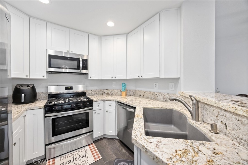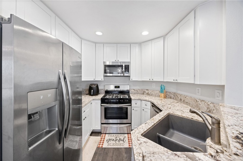 MOTIVATED SELLER! Seller is willing to pay remaining HOA dues for the year ($561 x 10 = $5,610). Discover this beautifully updated one-bedroom condo in the gated Crown Villa community, just minutes from Orange County. With vaulted ceilings, new dual-pane windows, and updated finishes throughout, this home offers modern comfort and style. The kitchen features sleek new countertops, white cabinetry, and stainless steel appliances. The spacious living room and dining area are perfect for relaxing or entertaining. The bedroom includes a new ceiling fan and mirrored closet doors, while the updated bathroom offers a shower tub combo and fresh countertops. Enjoy resort-style amenities, including a sparkling pool, tennis and basketball courts, an exercise room, and a clubhouse. All appliances, including the washer, dryer, and refrigerator, are included, plus a renewed home warranty for added peace of mind. This move-in ready gem won’t last long—schedule your showing today!