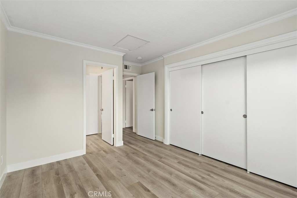 Discover the pinnacle of modern, low-maintenance luxury and privacy in this tastefully remodeled 2-bed, 2-bathroom second-story end unit condo situated in the exclusive gated community of Crown Villas at 2576 Avenida Del Vista, Corona, CA 92882.This approximately 956 sq ft gem enjoys the premium advantages of a top-floor (second-story) end unit—meaning no one above you for complete peace and quiet, and no shared walls on either side of the bedrooms, providing enhanced privacy and tranquility rarely found in condo living. Thoughtfully updated with premium features throughout, the home showcases brand-new luxury vinyl plank (LVP) flooring that offers the warm, authentic look of hardwood with superior durability, water resistance, and easy maintenance—ideal for Southern California's lifestyle. The open-concept design flows beautifully from the updated kitchen into the living areas, enhanced by sleek finishes, abundant natural light, crown molding, and fresh custom paint. Enjoy the convenience of a quality stackable washer and dryer in your own private in-unit laundry closet—perfect for effortless, at-home convenience without shared facilities. The residence features two generous master suites, each with a private bath and remodeled closets equipped with custom organizers for maximum storage and organization, complete with built-in shelves, hanging systems, and smart storage solutions. Step onto your private balcony to soak in breathtaking mountain and canyon views, offering a serene, tranquil backdrop against the peaceful foothills of the Cleveland National Forest. Crown Villas provides resort-style amenities in a secure, gated setting: Sparkling pool and spa, Fitness center, Clubhouse, Tennis and basketball courts, Dog park, Picnic areas and walking trails and Lush landscaping. Low-maintenance living is elevated with HOA-covered water, trash, and common area maintenance, plus enhanced security and ample guest parking. Conveniently located in South Corona, minutes from shopping, dining, top-rated schools, parks, golf courses, and major freeways. This move-in-ready second-story end unit condo combines exceptional privacy—no one above or adjacent to the bedrooms—with modern upgrades like new LVP flooring, private stackable laundry, custom-organized closets, and stunning natural mountain and canyon views—delivering outstanding value in one of Corona's premier gated communities. Schedule your private showing today and make this luxurious, peaceful retreat yours!