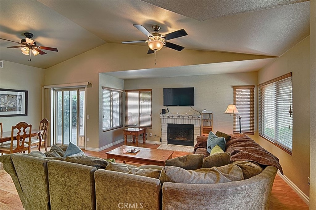 Single Story! This 3 bedroom 2 bath Single Story Home has it all! The property offers a great floorplan which opens to the spacious livingroom/ formal dining area. It is complete with vaulted ceilings and a gas burning fireplace for those cool evenings. The redesigned kitchen offers granite counters, a large island great for entertaining and is complete with a built in pantry. The master bedroom and kitchen both have access to a private atrium which attributes to the extra natural daylight. Energy efficient windows throughout the home, with 2 sliders leading to the spacious backyard complete with fabulous panoramic views of the hills. Directly across the street is a private park and the community pool is just steps away! This property is close to shopping and sets between the 91, 71 and 15 fwys. This one is a definite Do Not Miss!!!