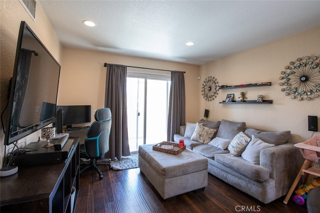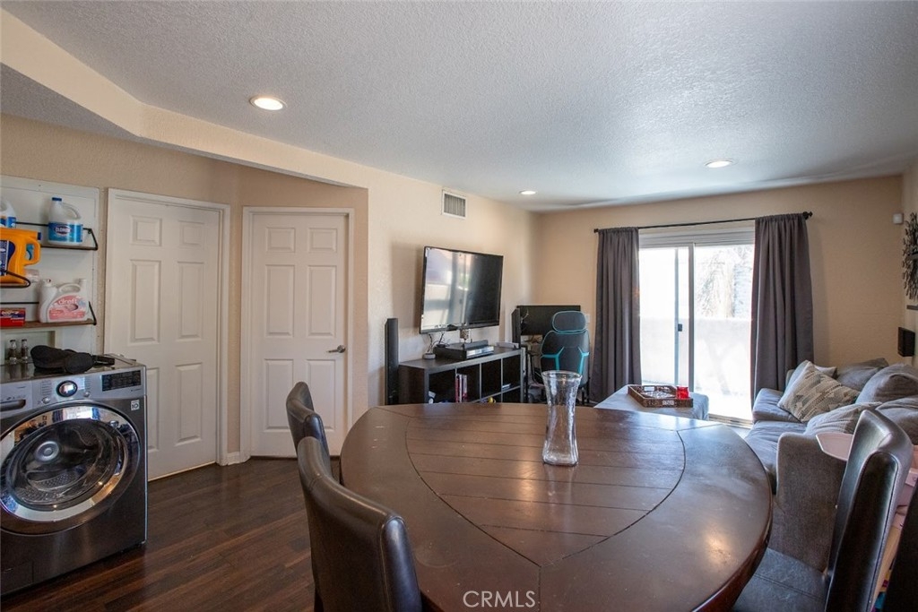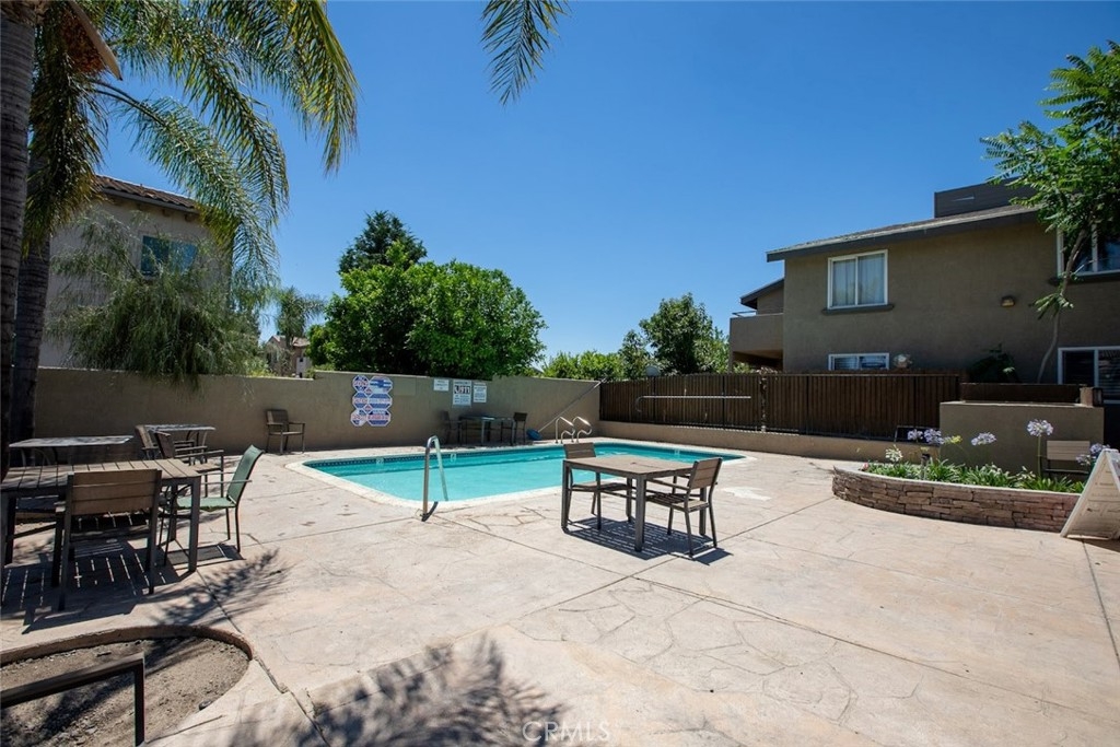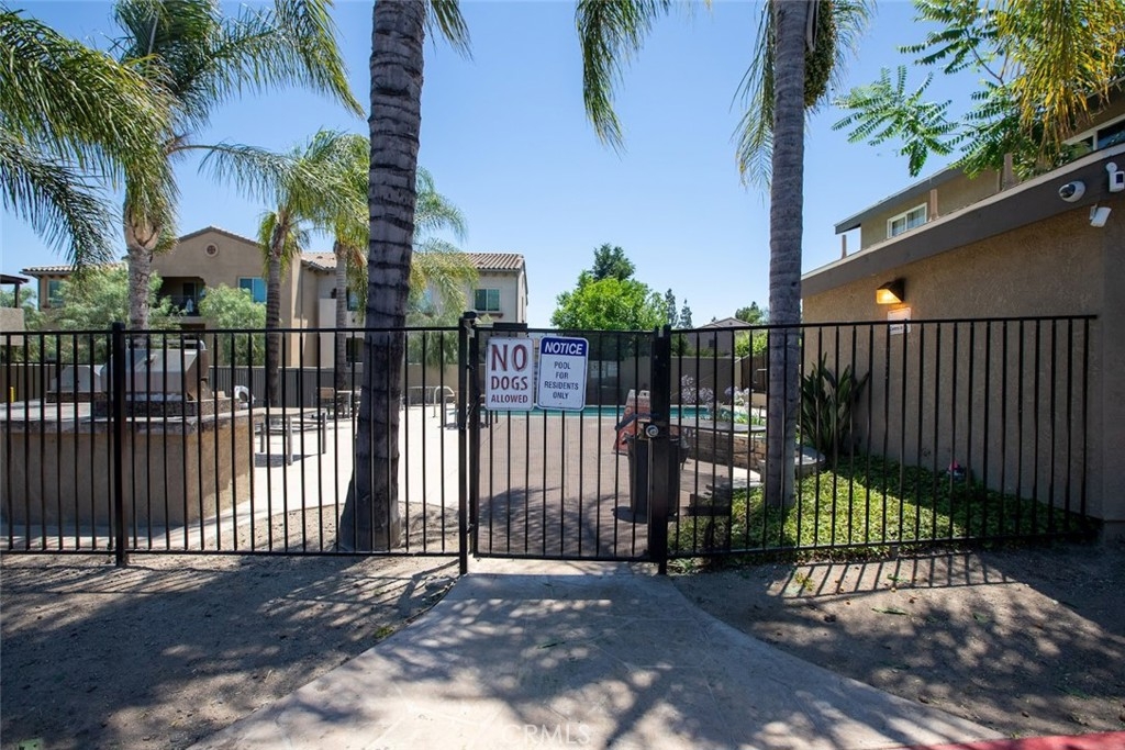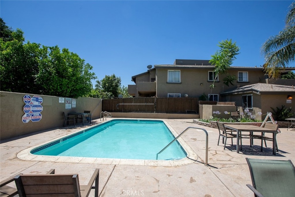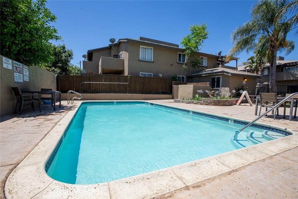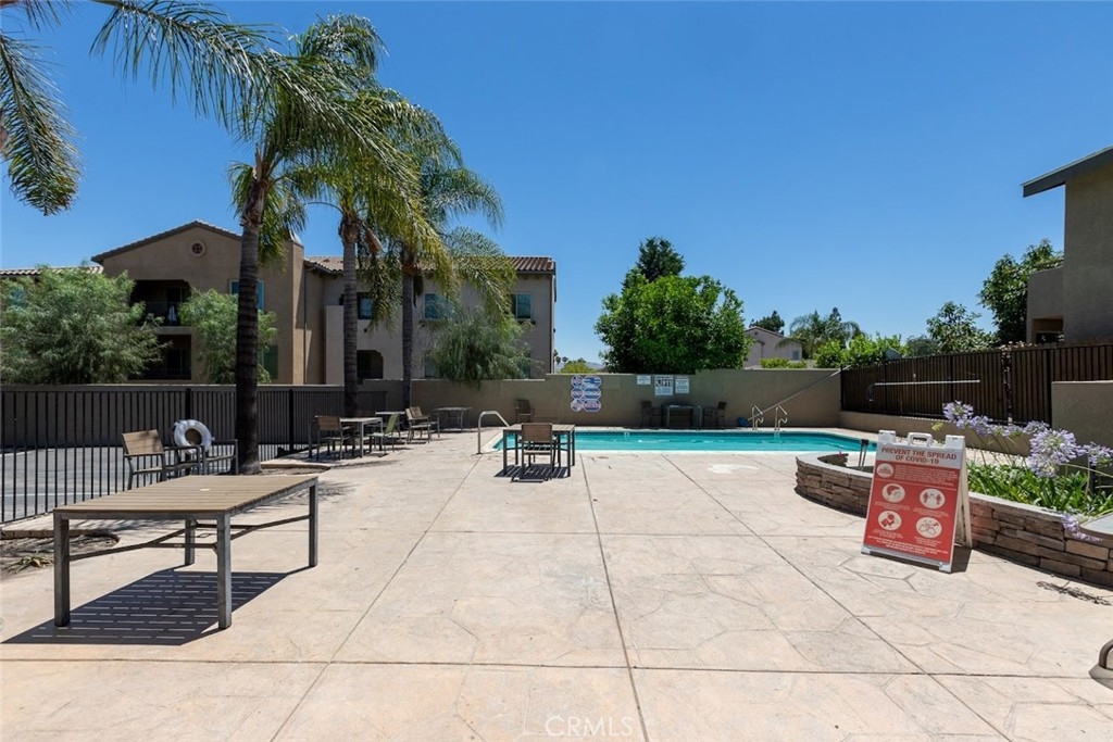 Wow! Wow! Wow! Welcome to Gianni Village, Property is located inside a Gated Community, Unit has 2 Bedrooms / 1 Full Bathroom, Living room, Nice Kitchen and Separate dining area, Nice Large Outside Patio off Livingroom, Good Size Bedrooms, Hardwood Flooring thruout home, Tile in Kitchen with Granite Counters and Lots of Cabinets, Recessed Lighting, Property has a Washer Hookup in unit and also a Community Laundry Area, Community Pool with BBQ Area and lots of Tables and Chairs to enjoy the Pool Area, Home has 1 Detached Garage below unit and 1 assigned parking space, Close to the MetroLink Station, Freeways 91 & 15, Shopping & Schools, so much more...