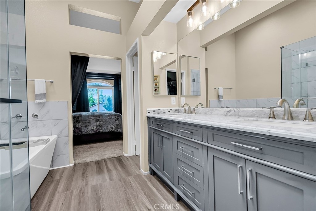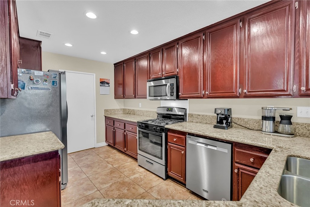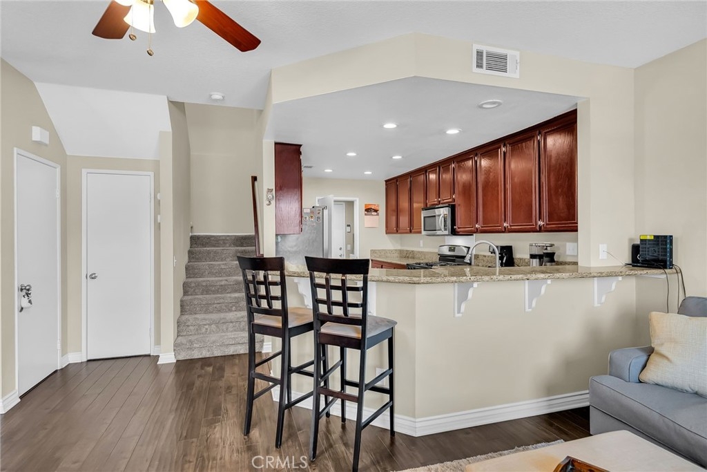 Located in the First Edition at Corona Hills community, this updated two-story condominium will not last. This highly sought after community provides privacy, amenities, and is in close proximity to the 91 freeway and Fastrak entrance. Entering this home, you are welcomed with a large living room and dining room. The two-way fireplace helps to bring the comforts of home to both the living room and the family room. Sit back and relax in the family room that is located next to the kitchen and includes a door that leads to your private back patio. The large kitchen includes ample storage and has been updated with granite counter tops and bar top. All bedrooms are positioned on the second floor. The main suite is the perfect personal sanctuary including an oversized bedroom and walk in closet. Unwind in your redesigned main bathroom with walk-in shower, dual vanities, and soaking tub. The guest bedrooms also have plenty of room and are a short distance away from the updated bathroom. This home also features downstairs laundry room and 2-car garage with direct access. Other updated items include newer HVAC system, updated plumbing, upgraded windows, and newly installed water heater. Just a few streets away from shopping and dining, this property has it all!
