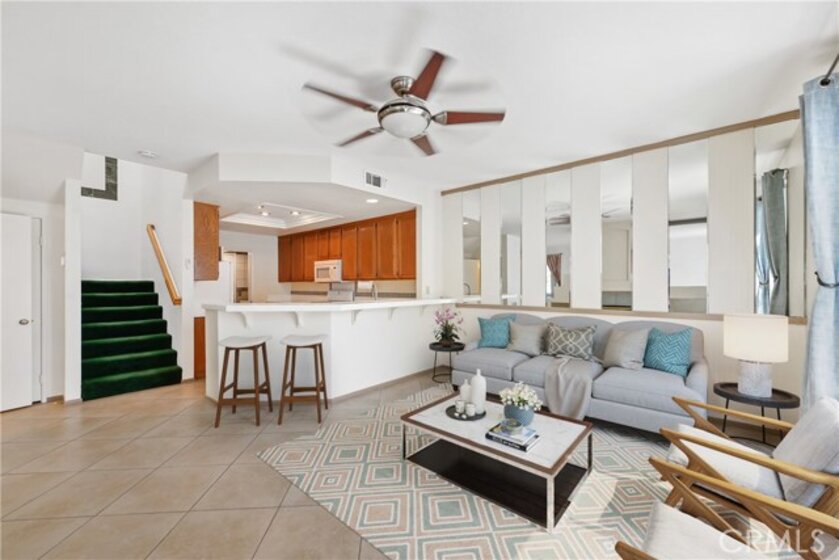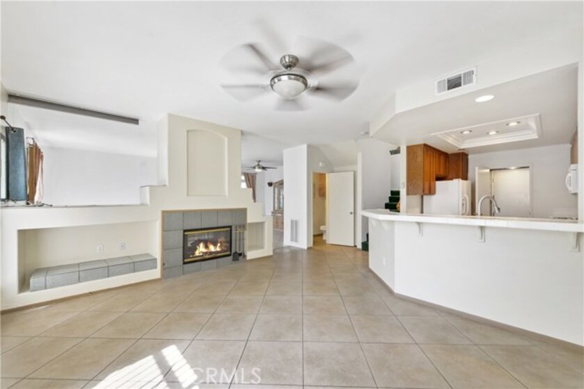 Don't miss out on this spacious 3 bedroom, 3 bath condo ready for you to move into. Upon entering the home, you will experience the inviting and open floor plan. The kitchen is open to the dining/family room with counter and bar stool eating area as an additional feature. The dual sided fireplace can be viewed from both the dining and living room. The inside laundry, 2 car garage access and half bath are most convenient and sought after. Upstairs you will be greeted with 3 bedrooms and 2 bathrooms. The master is large in size, facing the back of the complex and includes separate tub and shower units as well as 2 sinks and considerable counter space. The walk in closet allows plenty of room for clothing and accessories. This home is the largest floor plan in the community and includes a private patio accessed from the family room. The community includes a gated pool and spa for both cool and hot days. The location provides easy freeway access for commuters and is close to Costco, malls, schools and a public park.