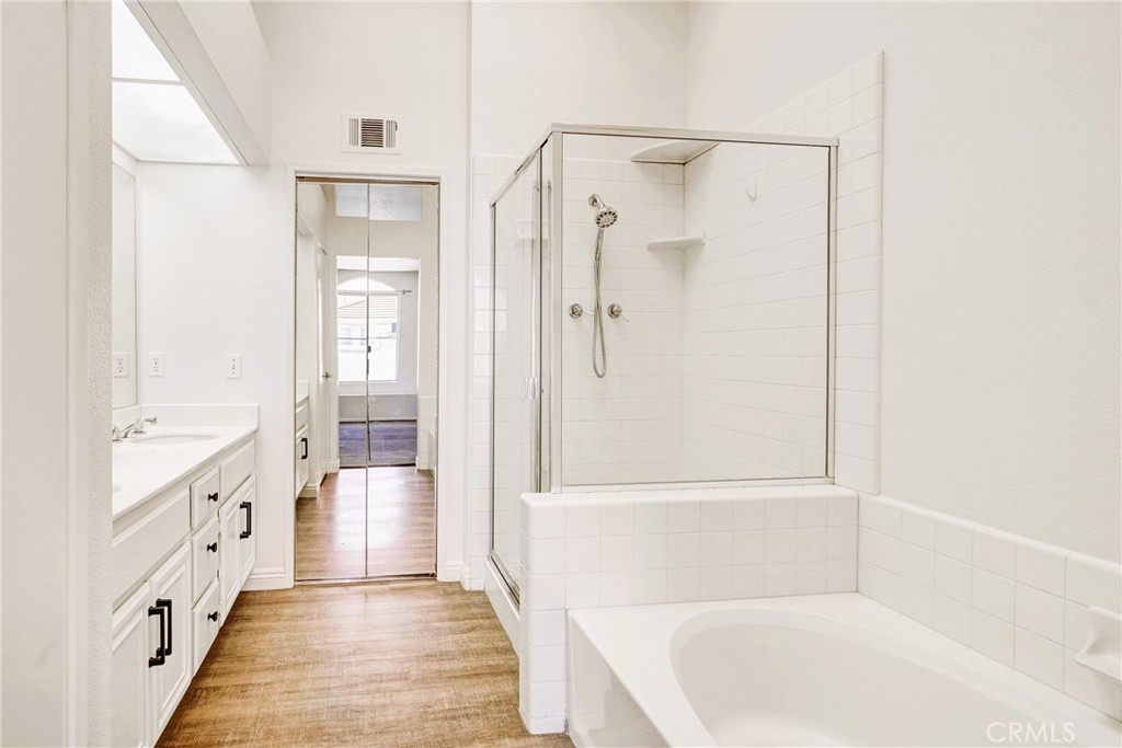 Set in the desirable community of Laing's First Edition in Corona Hills.....This contemporary, beautifully upgraded, and spacious 1714 sq.ft. home is filled with light, high ceilings and ample windows. Showcasing fresh white cabinets and modern black hardware, an OPEN FLOOR plan with a spacious kitchen, generous counter space, and a breakfast bar that opens to a quaint patio area. The 3 bedroom and 2.5 bathroom home features luxurious vinyl plank flooring, an interior laundry room, and a 2 car-attached garage with direct access to the kitchen. With an inviting family room, formal living room and dining room share an elegant two-sided gas fireplace for easy entertaining. In the Master bedroom you will find an ensuite bathroom with a separate soaking tub, enclosed glass shower, dual vanities and a large walk-in closet. There is a refreshing community pool and jacuzzi/spa for summer fun. This desired location is conveniently located near freeways, parks and green space, minutes away from many dining and shopping options.