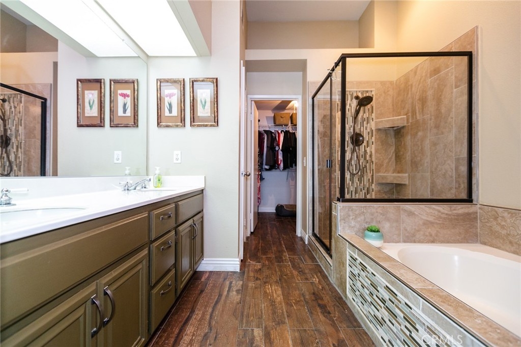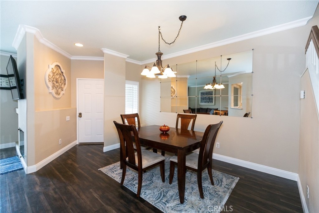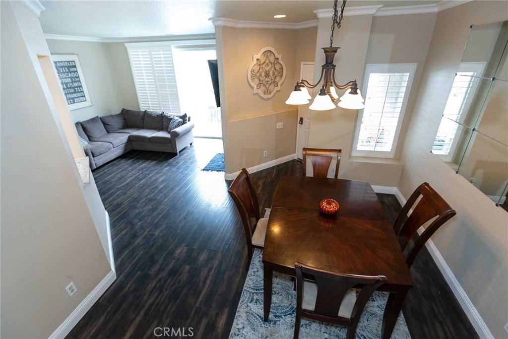 This beautiful home is situated in a desirable location in the Laing's First Edition Corona Hills condo complex. The home features an open-concept layout. It offers 3 bedrooms and 2.5 baths, and the skylight lets in plenty of natural ambiance throughout the living area. The kitchen has been updated with gorgeous quartz countertops, detailed cabinetries, a seamless mosaic backsplash design, and stainless steel appliances. The breakfast bar, fireplace, hardwood/tile flooring, crown moldings, and ceiling fans provide a comfortable and relaxing feel throughout this home. Both the dining area and living room are spacious. There are also shutter sliding doors that lead to the front patio and a private bedroom balcony. The master bedroom is a luxurious retreat that features a private bath and a large walk-in closet. This home is located in a great community in Corona, and it's easy to spend your weekends at the community pool and gardens. You'll also enjoy the convenience of having your own 2-car attached garage. Within a short walking distance, you'll enjoy nearby amenities such as restaurants, shopping, movies, parks, and hiking trails. Easy 91 and 15 freeway access. Low HOA and low taxes! Check out the link for the 3D Tour for an excellent floor plan layout!
