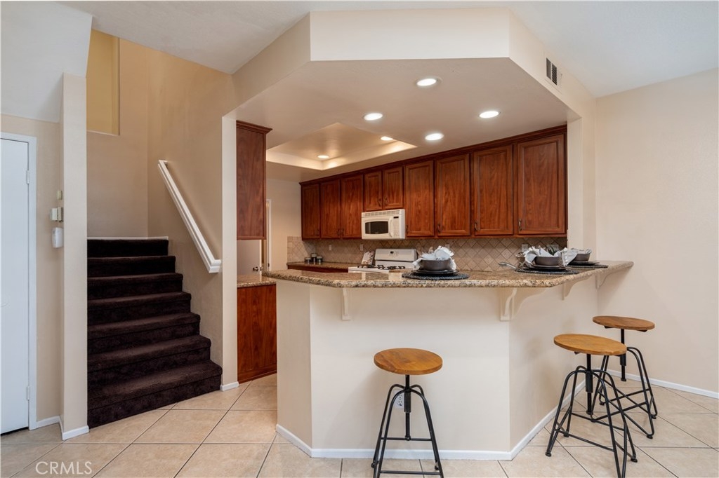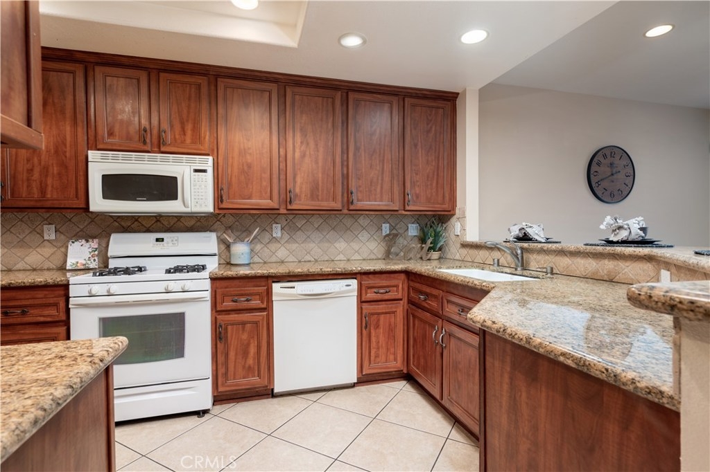 Attractive 3 bedrooms 3 bath end unit is ready for you! Upon entering the home you will immediately notice the great condition of the home along with the many upgrades throughout. This open concept floorpan is great for entertaining. There are mirrored walls in the dining room and stairwell. The kitchen offers granite countertops and back splash with plenty of attractive cabinetry. The bar area looks out to the family room where there is a dual sided fireplace. The downstairs includes a guest bath and laundry room. Upstair offers 3 bedrooms including a nice sized master suite. The large master bath includes granite counters, an upgraded master shower with a separate master bathtub and a walk in closet! Your new home is the largest floorpan in the community and is a private end unit with a nice patio. There is also an attached two car garage and plenty of guest parking. The community includes a gated pool and spa with showers and bathrooms. Close to great shopping, schools and with great freeway access this home is a Must See!