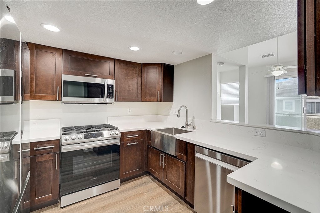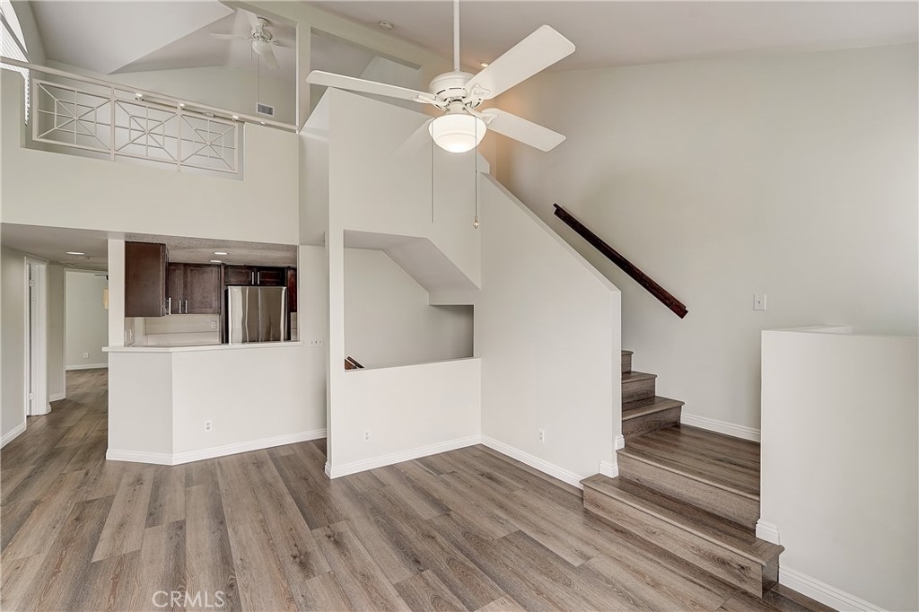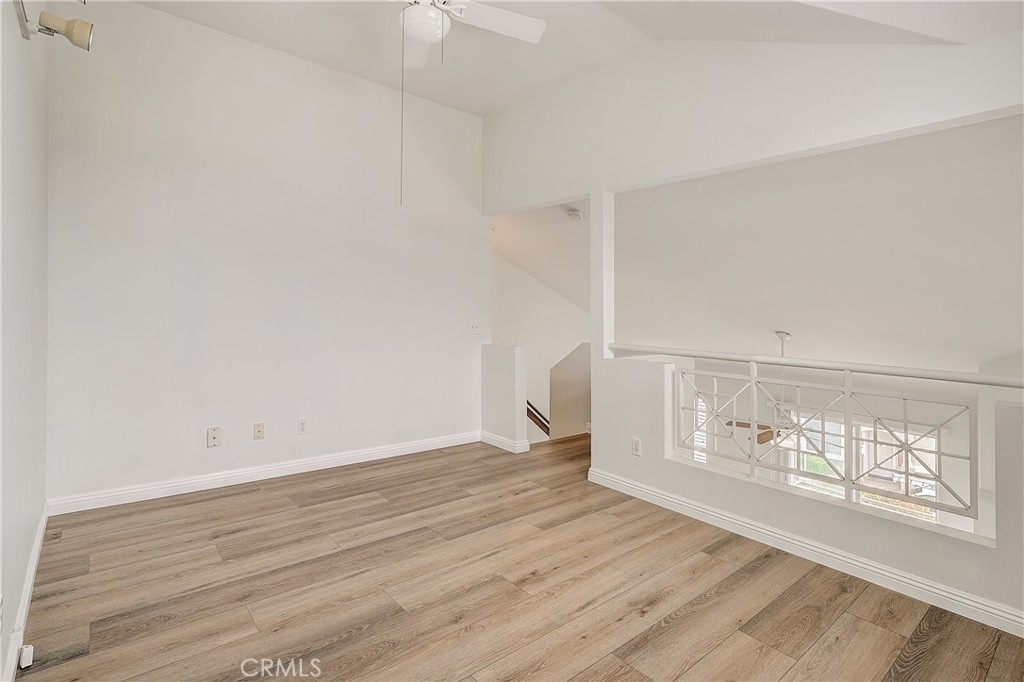 Great location in back of community, Light and bright corner end unit. 2 car garage attached. 2 story condo with a loft. Entry on 1st level either by garage or front door. 2nd level has 2 bedrooms, 2 baths with vaulted ceilings, a living room area with fireplace and balcony. Another set of stairs lead up to loft area, great for home office, possible 3 bedroom. Kitchen has been totally remodeled and upgraded with new cabinets and drawers that are self closing, Quartz counter tops. Laminate flooring t/o. Bathrooms have been completely remodeled and modern. Ceiling fans through out the unit. Brand new ducting, AC unit and furnace. New flex tube plumbing & water heater installed 3 years ago. A must see property. Close to freeway, shopping, restaurants and parks.