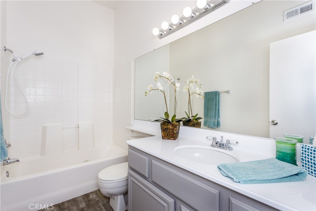 Complete refresh of this 3 bedroom 2 and 1/2 bath Laing's First Edition at Corona Hills home. Move right in to new Luxury Vinyl Plank flooring, designer chosen carpet and freshly painted interior. Every register, switch plate and door knob has been replaced as well as new screens and lighting fixtures. The master bath has been recently remodeled with a separate custom tile shower stall, bathtub replacement, counter top and tile floor. Master has a walk in closet with mirrored closet doors in the secondary bedrooms. Beautiful mountain views from the upstairs balcony off the master bedroom. The kitchen appliances have all been recently replaced. This home has it all, an attached two car garage with direct entry and inside laundry. Conveniently located within one mile of the 91 freeway close to shopping and restaurants. Walk to nearby Promenade Community Park and elementary school.