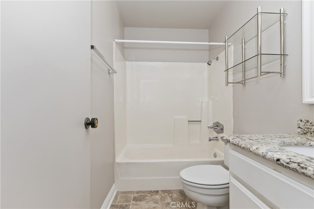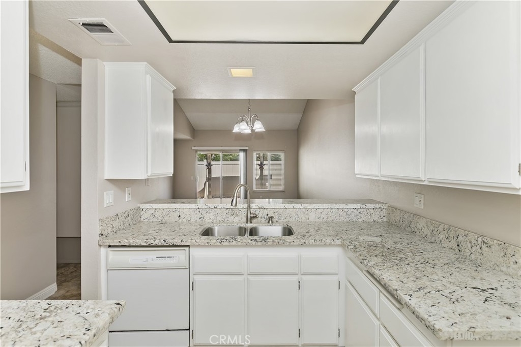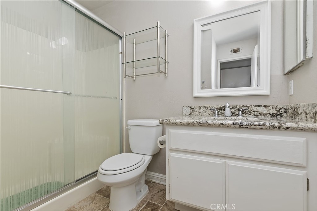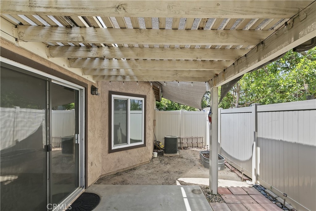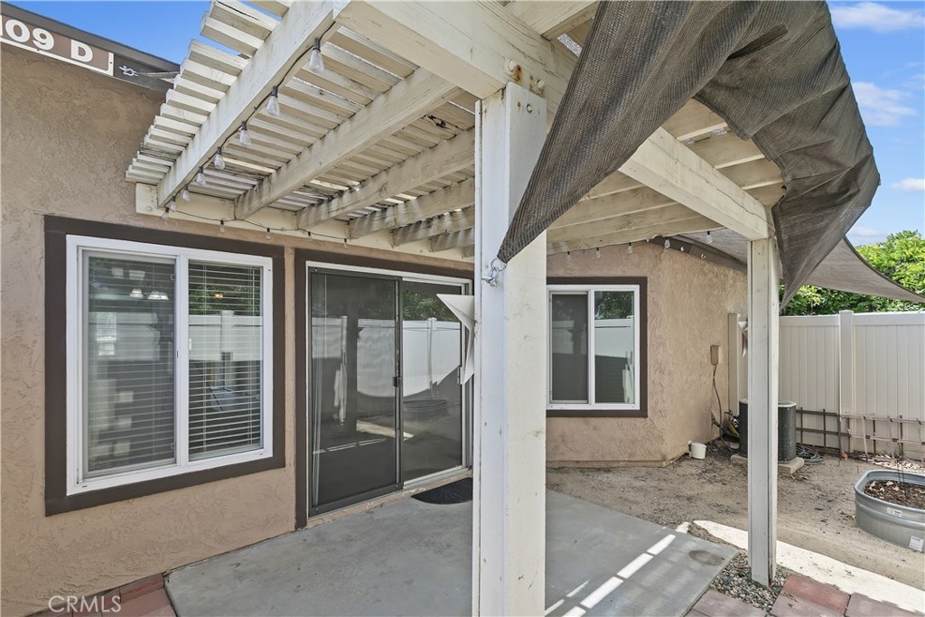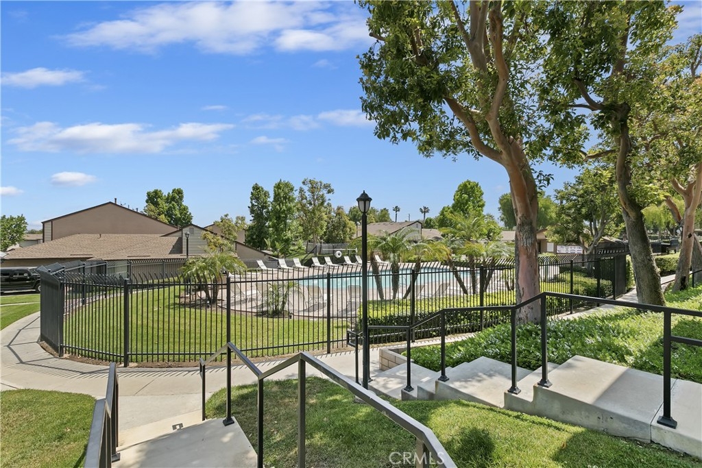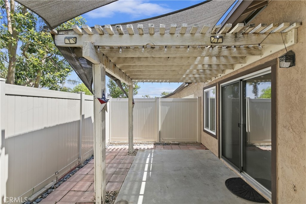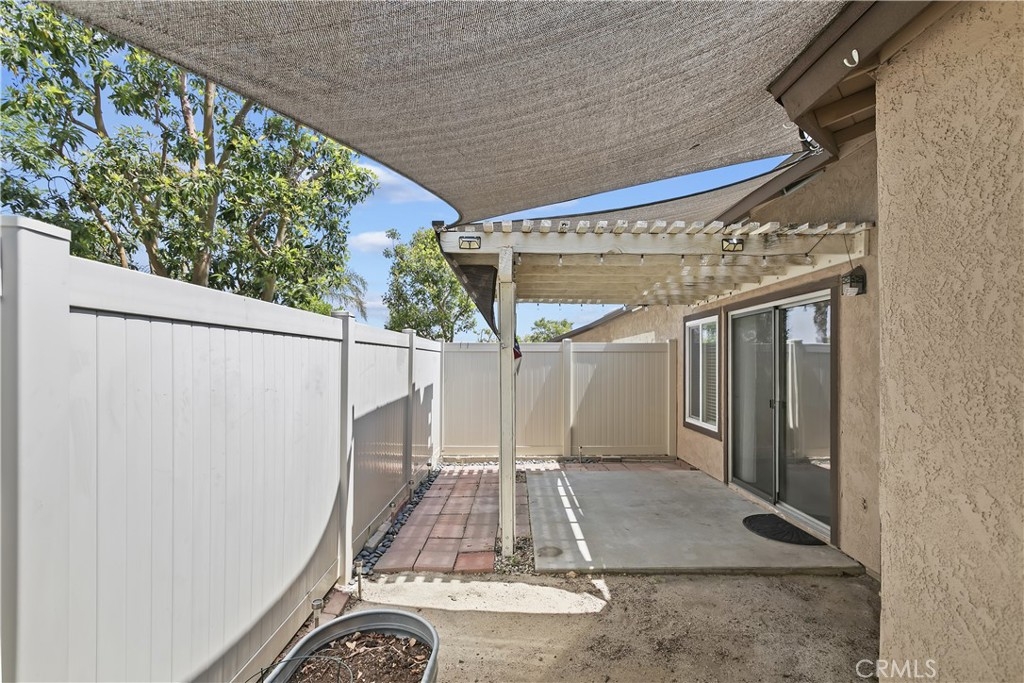 Beautiful 2 bedroom/2 bath condo single story in Laurelwood in Corona !!! Upon entry, your beautiful kitchen features granite top counters, white cabinets, stainless steel sink, stove and microwave w/ tall eating counter that opens to the spacious family room/dining room combo. Just off the family room is a slider that leads to your backyard patio with a slatted patio cover w surrounding vinyl fencing for privacy. The living space includes a hallway inside laundry between 2 separate bedrooms, each having it's own private ensuite - one with a tub shower combo and one with a shower - the bathrooms include granite tops and white cabinets, that match the kitchen. Other indoor features include blinds throughout, mirrored wardrobe doors in the bedrooms, tasteful carpet & tile flooring. The exterior in the front includes an attached single car garage with open ceilings for plenty of storage and a private single parking space in the front. The HOA includes a beautiful swimming pool and spa facility that is very spacious and relaxing for those hot summer days ahead. These single stories are very popular and go fast - thanks for showing and see you in escrow !!!