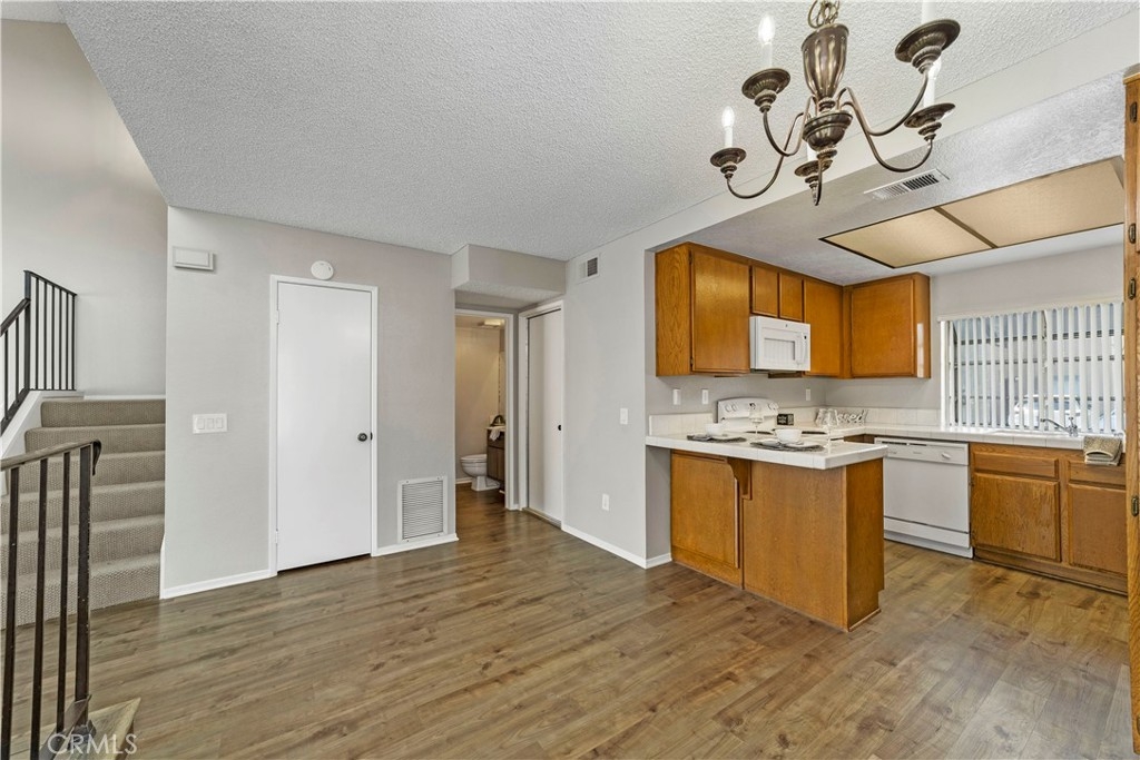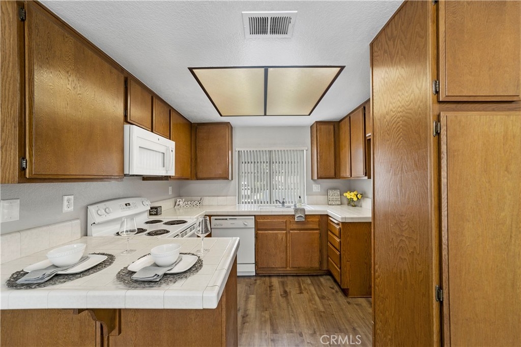 Discover the perfect blend of comfort and style in this beautiful two-story condo. Featuring elegant LVP flooring throughout, the bright and airy living room boasts high ceilings and sliding doors, allowing an abundance of natural light to fill the space, creating an inviting and spacious atmosphere. Adjacent to the cozy kitchen is the dining room, ideal for entertaining guests. The kitchen, though quaint, is fully equipped with all the essentials you need. The first floor also offers a convenient half bathroom and direct access to the attached one-car garage. Step outside to the quaint outdoor patio, perfect for hosting gatherings with family and friends or providing a delightful space for a small pet. Upstairs, you'll find two primary suites, each featuring its own spacious bathroom, ensuring privacy and comfort for all residents. Additionally, the property includes an extra parking space for your convenience. The Laurelwood Community enhances your living experience with fantastic amenities such as a pool, spa, and meticulously maintained grounds. This charming condo is an ideal retreat, offering both functionality and tranquility in a desirable location.