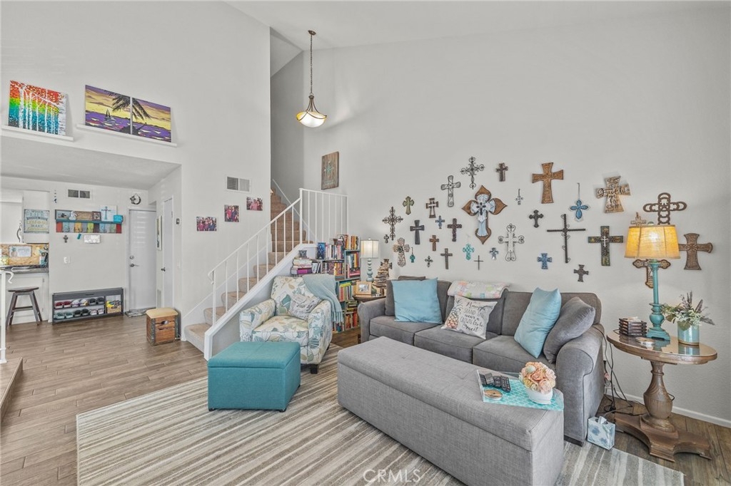 Welcome Home! This upgraded condo has been lovingly cared for and it shows. This very open floor plan feels spacious, bright and super clean. The kitchen is upgraded with Corian countertops and a beautiful tile backsplash. The stainless appliances (range, microwave, dishwasher) look brand new and the Seller is willing to leave the refrigerator. There is a roomy dining area off the kitchen. Upgrades include a remodeled powder room as well as a walk-in storage closet complete with custom organizers. The living room feels light and airy with its vaulted ceilings. There is a large slider leading to the quaint outdoor area, perfect for bbqing and dining alfresco. Details such as, all the tile plank flooring (that looks like wood) downstairs to shutters throughout, add lots of warmth and style! Upstairs you'll find two primary suites each with it's own bathroom. Both bathrooms have been remodeled completely. Again you'll find closet organizers and custom linen cupboards. This end unit has an attached garage with direct access as well as a designated parking spot, right outside the garage side door for convenience. The grounds in the Laurelwood complex are beautifully maintained and there is a pool & spa to be enjoyed by the residents.