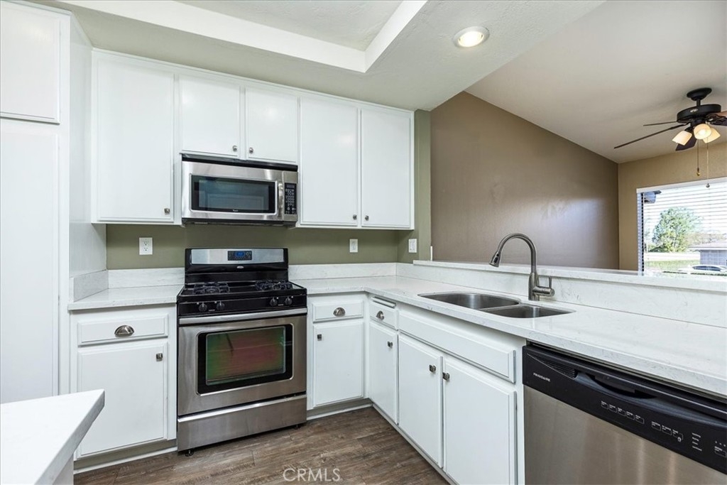 Charming 2-Bedroom, 1-Bathroom Condominium in Magnolia Glen – A Must-See! Welcome to this beautifully upgraded 2-bedroom, 1-bathroom single-story condo in the desirable Magnolia Glen community of Corona, CA. Offering a perfect blend of comfort, style, and convenience, this home is move-in ready and waiting for you to make it your own. As you enter, you’ll immediately notice the upgraded laminate flooring throughout, creating a warm and inviting atmosphere. The spacious family room features a large sliding door that opens to a private backyard, perfect for relaxing or entertaining. The backyard boasts vinyl fencing on the sides, a block wall along the back for added privacy, and an Alumawood patio cover for shade. You’ll also enjoy an automatic drip system to keep your plants looking their best. The kitchen is a true highlight, with sleek white cabinetry, quartz countertops, stainless steel appliances, and plenty of storage space—including a pantry. Can lights brighten the space, making it ideal for preparing meals or hosting guests. Adjacent to the kitchen is a cozy dining area with a ceiling fan and a window overlooking the parking area. The home offers a large spare bedroom with a vanity and sink, providing direct access to the Jack and Jill bathroom. The primary bedroom is generously sized and features windows that overlook the serene backyard, along with a spacious walk-in closet. Additional features include a direct single-car garage with a newer garage door and water heater, laundry area in the garage, and a 2022 HVAC system to keep you comfortable year-round. Living in Magnolia Glen means enjoying a well-maintained community with only single-level units, a community pool, and a spa. It's the perfect place to unwind and enjoy the Southern California lifestyle. Don’t miss out on this fantastic opportunity to own in one of Corona’s most sought-after communities. Schedule a tour today!