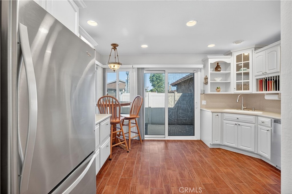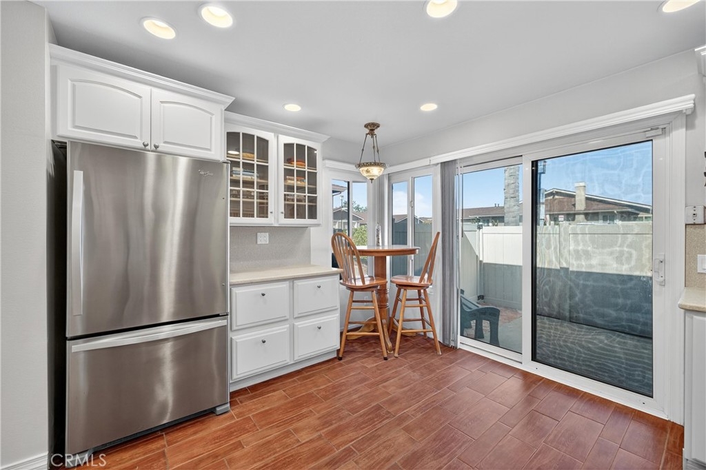 Freshly painted end unit with a beautifully updated kitchen, this single story home has much to love. It features two primary bedrooms, each with its own en suite bathroom and walk-in closet. One bathroom has a walk-in shower, the other has a shower in tub. Vaulted, scraped ceilings and recessed lighting set this home apart. The kitchen has been remodeled with updated cabinetry, countertops, and appliances (replaced within the last four years). This kitchen has lots of storage. Off the kitchen is one of two patios perfect for al fresco dining and entertaining. Big-ticket items have been taken care of, too — a new HVAC system within the last five years and a new roof installed just three months ago give you peace of mind. Outside, you’ll find two patios, one covered patio off the living room has low-maintenance turf, the other off the kitchen connects to the garage. An additional parking spot is next to the garage. Magnolia Glen has an association pool. Less than one mile to I-15, grocery stores, Starbucks, restaurants, and public transportation.