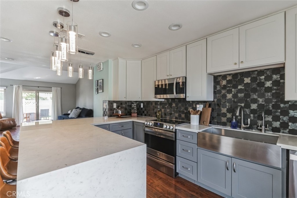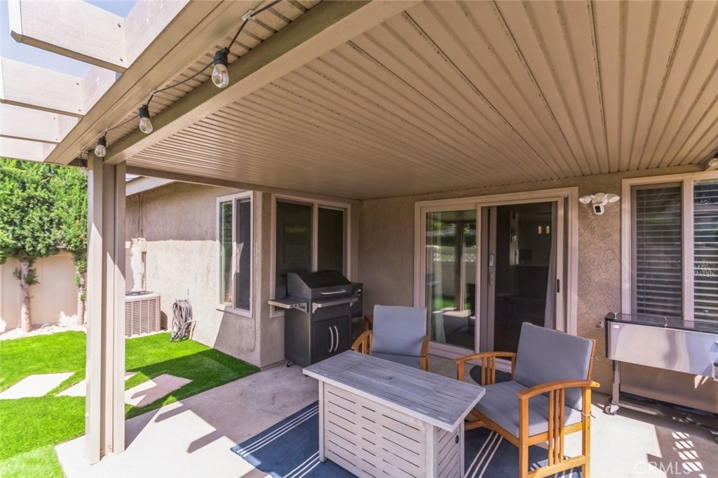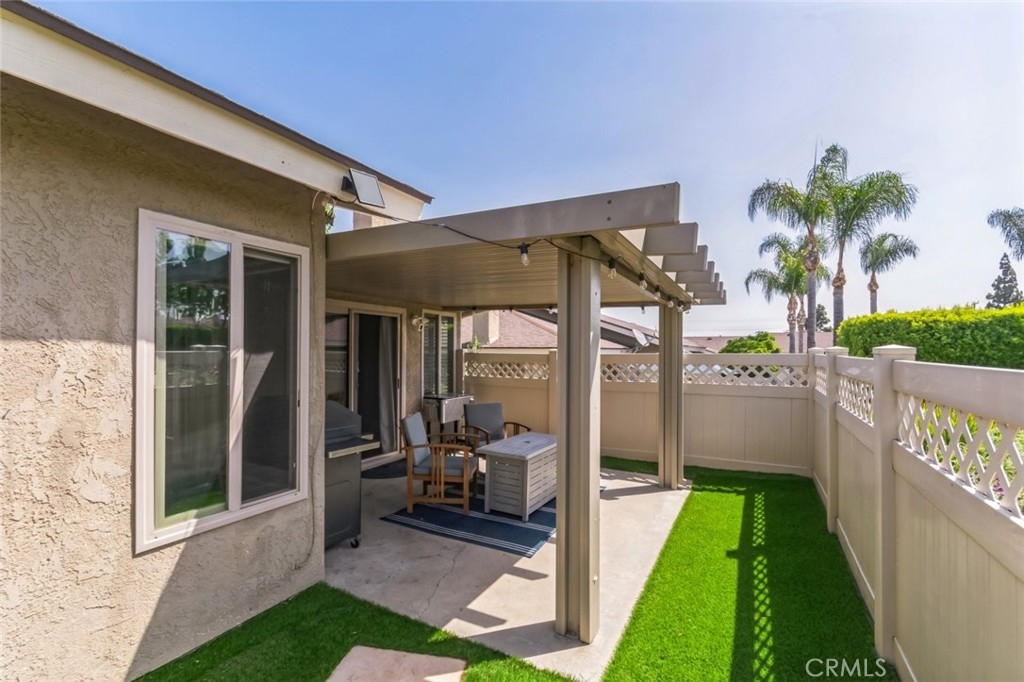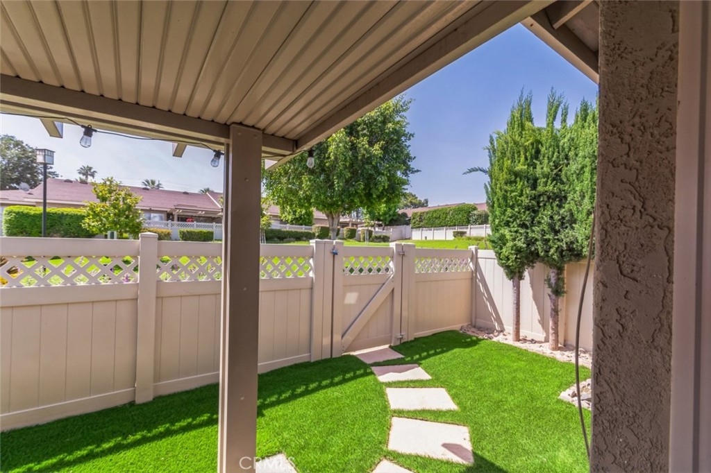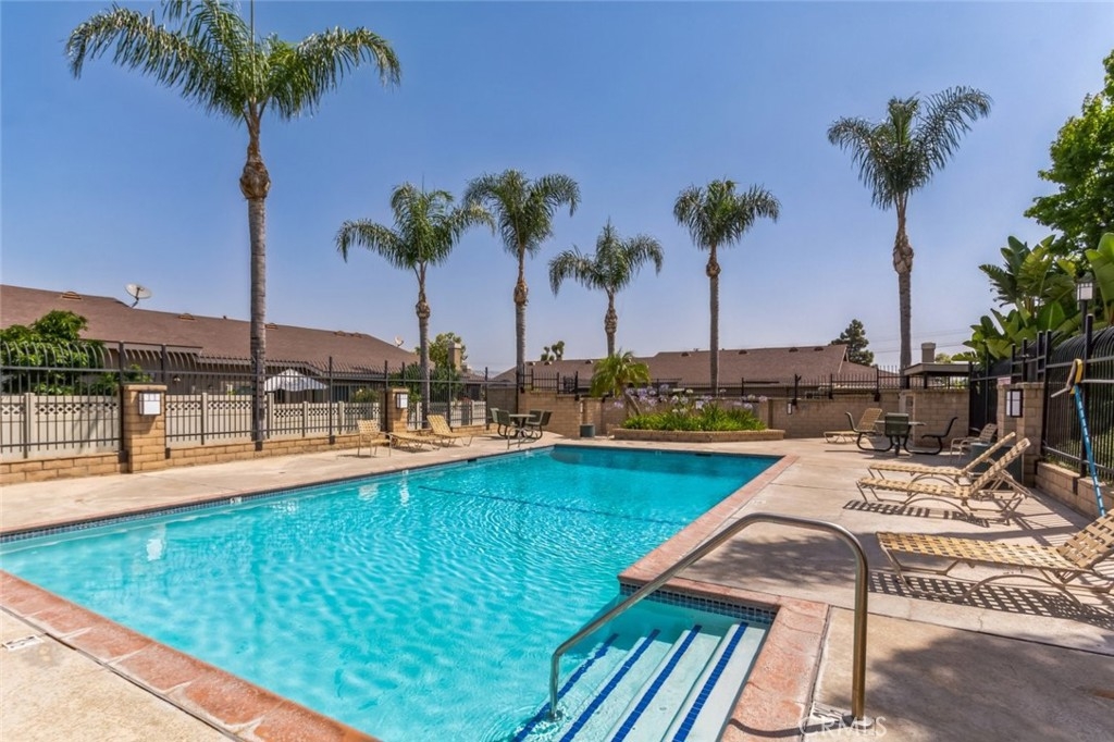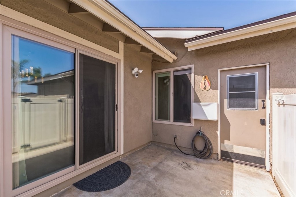 Welcome to 864 Papaya St in the beautiful city of Corona. This inviting condo features 2 bedrooms and 2 bathrooms spread across a spacious 1,076 sq ft. Located within a vibrant community, amenities include a pool, spa, dog park, and gated security. Convenient parking is available just outside the property. Upon entry, the welcoming living room greets you on the left, complete with a cozy fireplace ideal for entertaining guests. Adjacent is the well-appointed kitchen and dining area, featuring an electric cooktop, oven, ample storage including a pots and pans drawer, and a large sink. The kitchen also offers entrance to the fenced front patio, perfect to enjoy the weather. The primary bedroom offers an en-suite bathroom that offers a walk-in shower. Both bedrooms boast walk-in closets and enjoy abundant natural light, creating a bright and airy atmosphere throughout. The second bathroom offers a shower-in tub. Laundry hookups are conveniently located within the garage. Outside, discover the covered rear patio in the backyard, perfect for relaxing and enjoying the California sunshine. Situated near Centennial High School, parks, and hospitals, this condo offers both comfort and convenience in a desirable Corona location. Don’t miss out on this incredible opportunity!