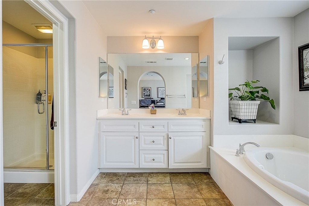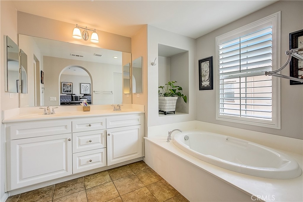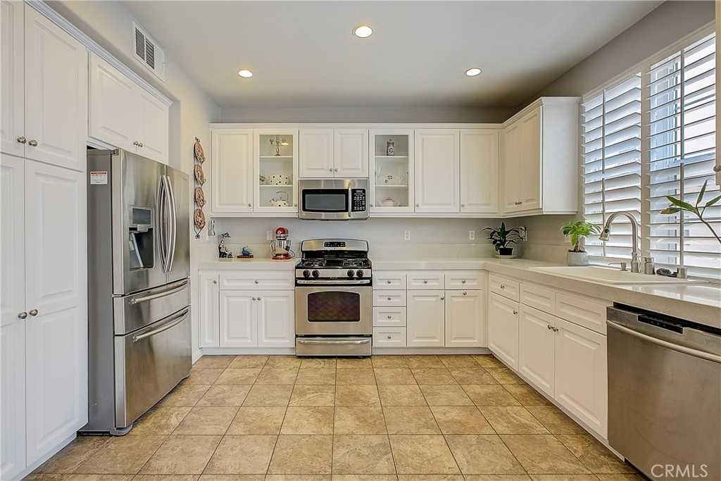 Fantastic opportunity to own a piece of the sought after Dos Lagos Community in Corona! This gorgeous home sits in a prime position in the gated community, and has an open grassy area at your front doorstep. As you make your way inside you are greeted by high ceilings, plantation shutters, an abundance of light, stylish wood laminate floors, and a built in bookcase. As you make your way to the open family room you will notice the built in entertainment center, recessed lights throughout, and an oil burning fireplace. Adjacent to the family room is your beautiful kitchen with stainless steel appliances, beautiful white cabinetry, and quartz countertops. Upstairs there are 2 bedrooms and 2 bathes. The master has a built in closet and a massive bathe tub. Don’t miss the 2 car garage with additional storage you have to see to believe! Enjoy the community amenities which include: gated community, club house, pool, parks, quiet neighborhood, and walking distance to shops, restaurants/fine dining, entertainment and easy freeway access. Come see all the features this home has to offer!
