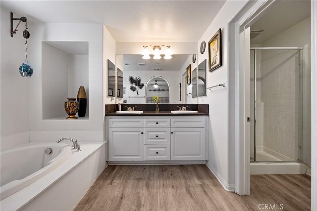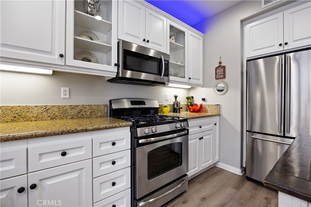Stunning townhouse located within the gated community of Owens Cove at Dos Lagos. With an exterior location adjacent to a lush, tree lined greenbelt, and picnic areas, This stunner will likely go fast! Aside from being situated in the most highly desired area of the community, the spacious interior will leave you impressed. The entrance features a formal living, dining area, perfect for large gatherings. A beautifully finished kitchen featuring crisp white cabinets, granite counters, and stainless steel appliances completes the coziness of the home. Head upstairs and you will find an expansive master suite that includes an Ensuite Bath of shower, soaking tub, walk-in closet, and a picturesque balcony overlooking Dos Lagos Lake. Across the hallway you'll find the second bedroom with its own private bathroom. Other fantastic features of the home includes indoor laundry, central AC, dual pane windows, recess lighting, laminate flooring throughout, a finished 2 car direct access garage with extra storage spaces. Last but not least, this controlled access community has also come with plenty of entertainment amenities such as clubhouse, pool (s), spa, park (s) and evening patrol. Conveniently located near a host of shops, grocery stores, and restaurants, this prime property can soon be yours to call HOME!