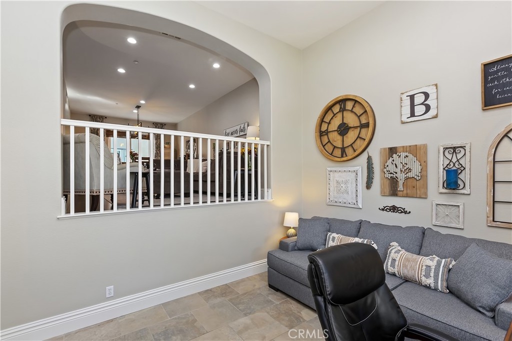 Location, location, the BEST location! Welcome to this tri-level beauty, located in the highly sought after Owens Cove Dos Lagos in Corona. From the superlative front porch you will love peering out to the HUGE front grassy area, and with the stately CLUBHOUSE AND POOL just steps away, makes this former model home even better! Upon entrance, you will be warmly greeted in to a spacious front den/formal living room, and then up a few stairs from there you will find the open family room that showcases a lush view of the green way. The Kitchen is a chef's dream featuring stainless steel appliances, white cabinets with upgraded granite counter tops and a beautiful tile back splash. The upper level boasts the master bedroom featuring lovely white built-in dresser drawers and a spacious walk-in closet. The HUGE inviting bathtub and stand alone shower makes for the perfect retreat! The other master bedroom is great size, offers plenty of closet space and is complete with an ensuite full bath. The washer and dryer are located in the hallway between the bedrooms, making laundry time quite convenient! With plenty of storage located in the garage its easy to stay organized. The expansive greenbelts and community amenities makes for resort-like living.