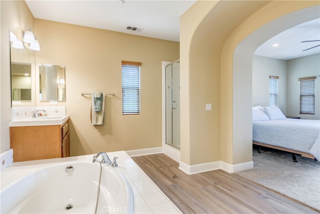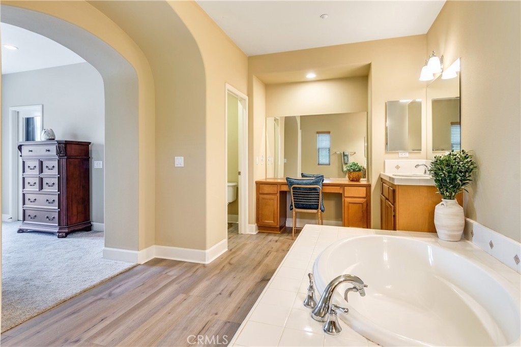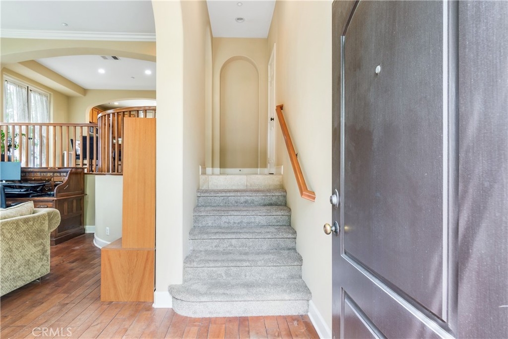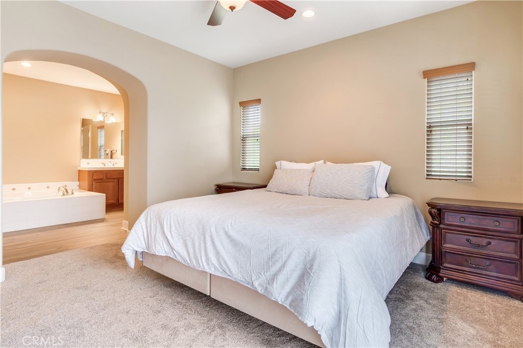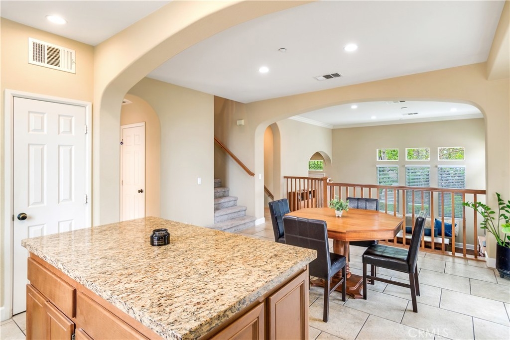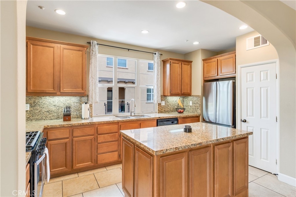 Welcome to 4460 Owens Street Unit 106—a beautifully updated 3-bedroom, 2.5-bath end-unit condo offering 1,825 square feet of thoughtfully designed living space in the highly desirable, gated community of Owens Cove at Dos Lagos. This bright and spacious home offers the perfect blend of modern upgrades, smart layout, and an unbeatable location just steps from shopping, dining, golf, and outdoor recreation. With only one shared wall and positioned on the end closest to the Dos Lagos Shopping Center, this unit enjoys enhanced privacy and walkable convenience in one of Corona’s most vibrant neighborhoods. Inside, you’ll find brand new carpet, fresh interior paint, and an open-concept layout filled with natural light. The large kitchen is the heart of the home, featuring stainless steel appliances, granite countertops, generous cabinetry, a spacious kitchen island, and ample workspace—ideal for both cooking and entertaining. The second story hosts the main living and dining areas, which open up to a private balcony—perfect for enjoying your morning coffee or evening breeze. This level also includes a convenient indoor laundry room and a guest powder room. Upstairs on the third level, the expansive primary suite serves as a true retreat with its own private balcony, walk-in closet, and a luxurious en-suite bathroom complete with a soaking tub, separate glass-enclosed shower, dual sinks, and a seated vanity. Two additional bedrooms are located just down the hall, served by a full guest bathroom that features a tub-shower combination—perfect for guests or family members. Additional highlights include an attached two-car garage with exceptional bonus storage in a dedicated area—ideal for seasonal items, tools, or hobby gear. Enjoy resort-style living with access to a sparkling pool, jacuzzi, clubhouse, and secure gated entry, all within a beautifully maintained and landscaped community. Situated directly across from Trader Joe’s and the Dos Lagos Shopping Center, you'll have shops, restaurants, a movie theater, and exciting new dining destinations right at your doorstep. Take relaxing walks around the man-made lake, complete with bridge, shaded paths, and peaceful seating areas. Golfers will appreciate the nearby Dos Lagos Golf Course, and with quick access to the 15 freeway, commuting is a breeze. With its spacious layout, high-end finishes, and a brand new air conditioner this end unit condo is a rare opportunity to live in the heart of Corona in style.