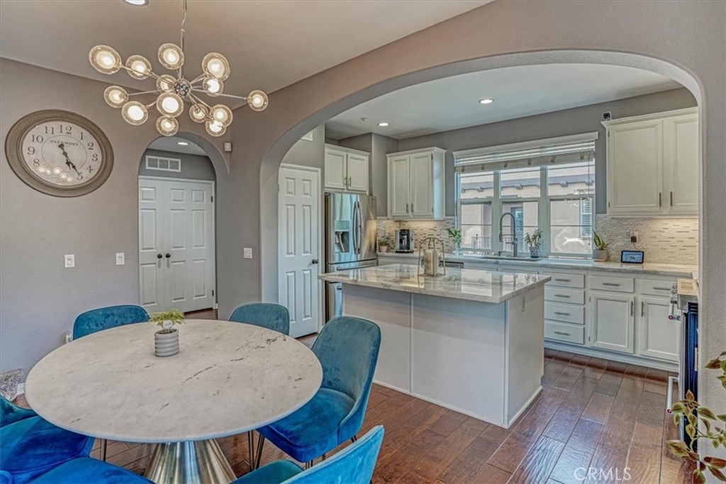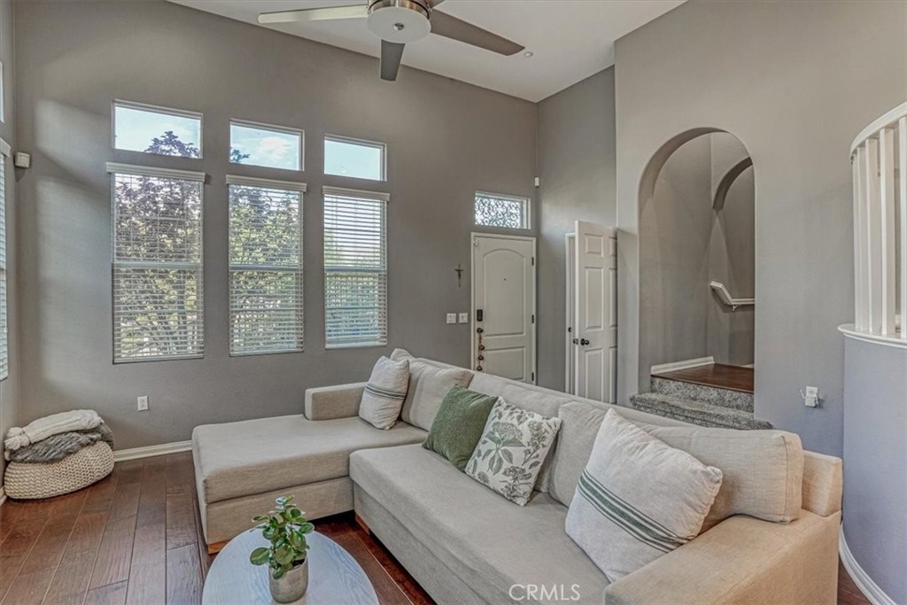 WOW! An absolutely beautiful upgraded home in the desirable gated "Owens Cove" Community of Dos Lagos in the City of Corona. You'll enjoy the astounding views of the hills and the Dos Lagos Golf Course. Once you enter through the front door, you instantly feel the warmth and welcome of the brightness and openness of the high ceilings of the living area. You'll appreciate the wood floors throughout, recessed lighting, and an open concept gourmet kitchen complete with granite countertops, a complementing a large island - also with granite, under cabinet accent lighting, stainless steel appliances, a large pantry, and French doors to allow in plenty of natural light and the free-flowing breeze. Take advantage of a second patio adjacent to the kitchen for your BBQ grill, complete with a natural gas line already in place. The gorgeous master suite features French doors which lead to its own large balcony for relaxing and has a custom walk-in closet. But it does not stop there - the master bath has His and Hers sink vanities, a built-in make-up vanity, a large soaking tub, separate shower alcove with tile and stone accents with glass enclosure, and a separate toilet space, all accentuated with large mirrors and upgraded lighting. The 2 car garage connects to a spacious area for plenty of additional storage. Enjoy the large pool and jacuzzi all surrounded by palm trees, cabanas, and a large club house complete with a pool table, kitchen, with plenty of sitting and relaxing spaces. Exceptional location and walking distance to the Dos Lagos Golf course, Dos Lagos Lakeside, and the Dos Lagos shopping center with a Trader Joe's, restaurants, and shops. This 1825 Sq/Ft, 3 bedroom, 2 1/2 bath home, perfectly situated end unit is sure to please. This exceptional home will go fast.