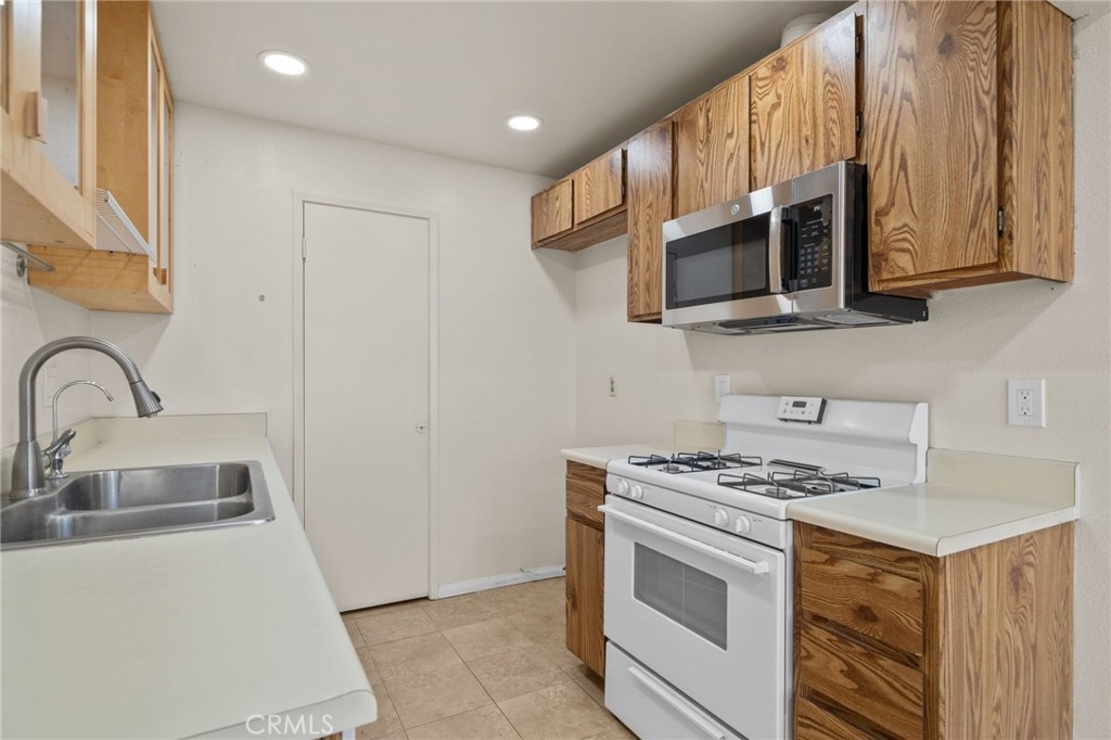 Welcome to this beautifully maintained upstairs condo offering comfort, style, and an abundance of natural light. Freshly painted throughout, this open and bright home features tile flooring that flows seamlessly through the main living areas, creating a clean and inviting space perfect for everyday living and entertaining. The spacious living room opens to sliding glass doors that lead out to your private balcony — the perfect spot to enjoy your morning coffee or unwind in the evening. Just off the living area, the quaint kitchen offers a pantry for extra storage, and a cozy breakfast nook that makes mealtime feel warm and inviting. This home features two generously sized bedrooms. The primary suite is a true retreat with vinyl flooring, fresh paint, ceiling fan, blinds, and custom built-in shelving. You’ll love the walk-in closet and the beautifully updated primary bathroom complete with a modern walk-in shower. The secondary bedroom is also impressively sized and is complemented by its own updated bathroom, offering comfort and privacy for guests or family members. Additional highlights include a detached one-car garage located below the unit for convenience and extra storage. The well-maintained community offers a sparkling pool, perfect for relaxing and enjoying sunny days. Move-in ready and thoughtfully updated, this upstairs condo combines functionality, comfort, and charm — a wonderful place to call home.