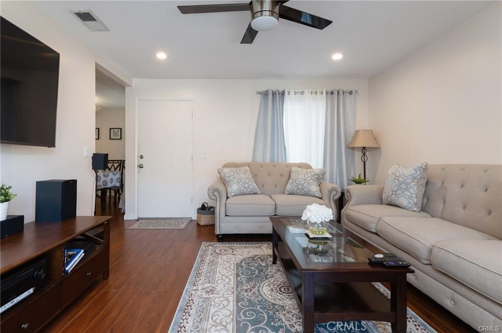 CORONA'S FINEST... IT WILL GO FAST! Beautifully Landscaped Condo Complex located in the desirable City of Corona 92882. Features include 1,095 SF of living space, 2 spacious bedrooms, 2 full bathrooms, large master bedroom with walk-In closet, 2nd bedroom also boasts a walk-in closet, newer wood laminate flooring, and tile throughout, ceiling fans, "Ring" doorbell for added security, functional kitchen with large walk-in pantry and granite counters & full granite backsplash and new stainless steel range hood w/ LED lighting. The spacious living room has recessed lighting w/dimmer, sliding glass door off of living room leads to the large balcony. Newer Central Heating & AC System, 2 reserved covered parking spaces with storage compartments are included with this upstairs unit. The Complex also includes a swimming pool/spa, Washer/Dryer are included (separate room downstairs). This property is located on a Cul-de-sac and is close to 91/15/241 Freeways and OC toll roads, shopping centers, parks, and Award-Winning Schools. ASSOCIATION INCLUDES: MAINTENANCE, WATER, TRASH, POOL, LANDSCAPING & HOMEOWNERS INSURANCE.