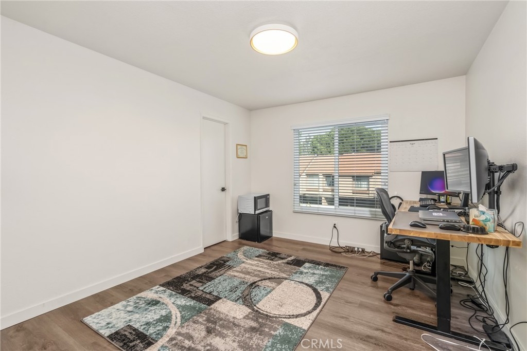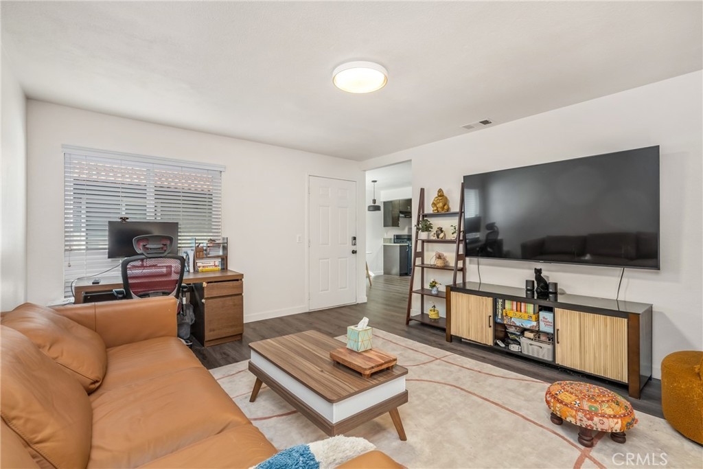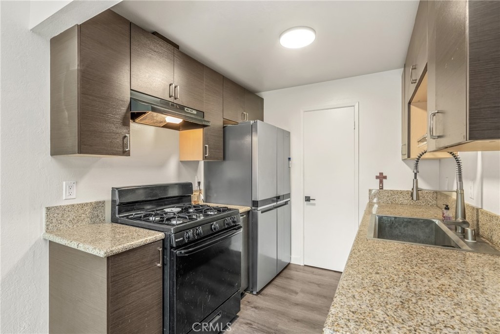 Don't overlook this charming Oakview condominium! This delightful upper-level unit showcases a luminous and open floor plan that has been extensively upgraded. Enjoy the recent improvements such as fresh paint, laminate flooring, fixtures, faucets, recessed lighting, and double pane windows. The kitchen has received a modern makeover, featuring cabinets with granite counters and a suite of appliances, including a refrigerator. The spacious family room opens to a balcony, providing a relaxing outdoor space. The generously sized master bedroom comes complete with an upgraded private bathroom and a large walk-in closet. The secondary bedroom is spacious and well-lit. The second bathroom has been upgraded and boasts a convenient shower/tub combo. For added convenience, the laundry room is situated below the unit. Residents also have access to a community pool and spa. This condo is strategically located near schools, parks, shopping, and freeway access.