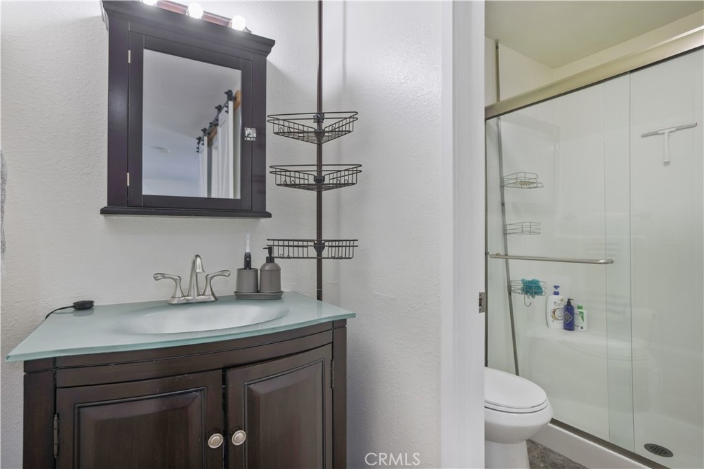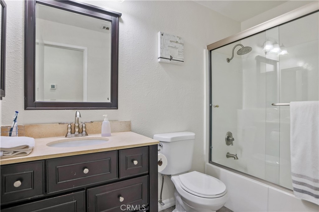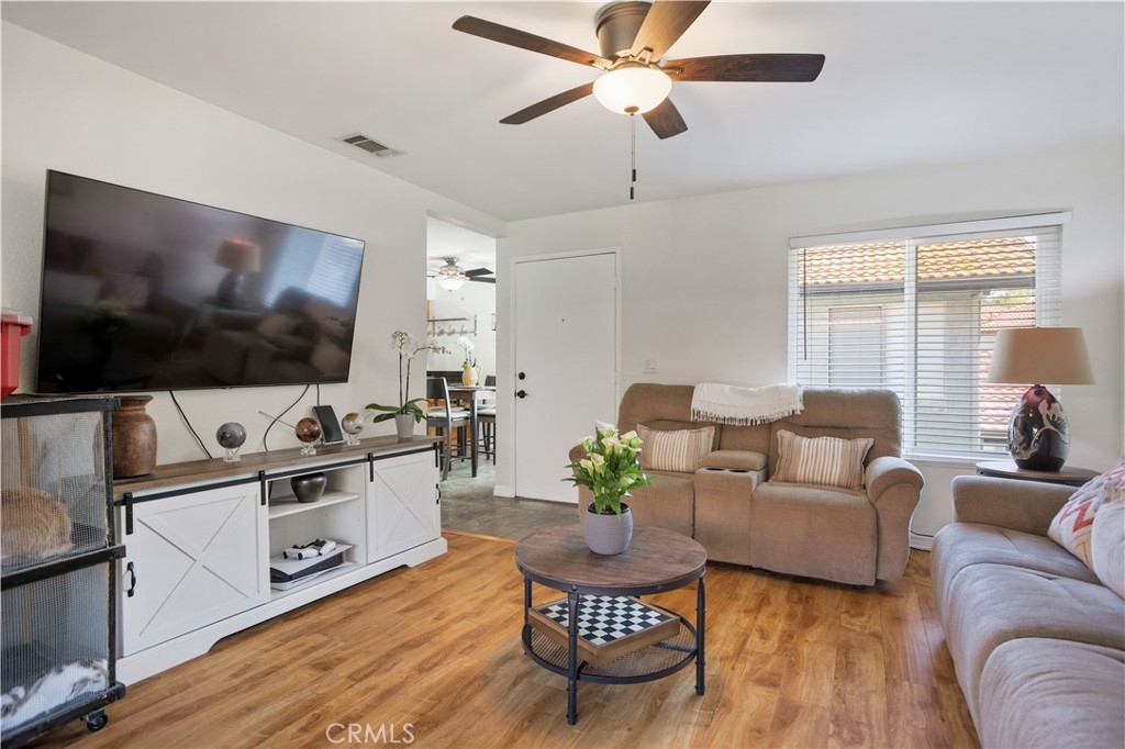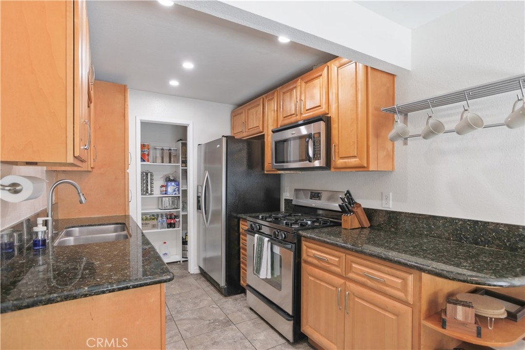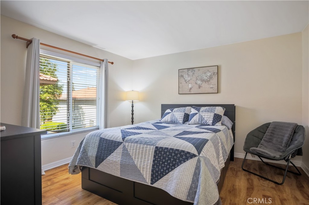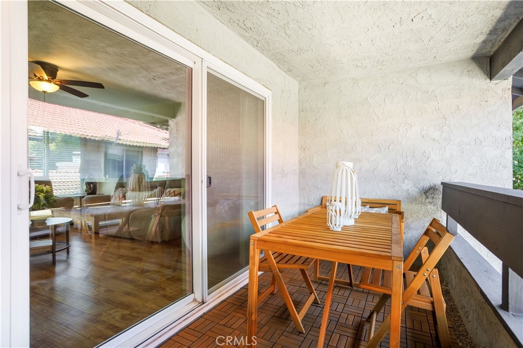 Welcome to this wonderfully appointed upper unit in a desirable area in Corona. This home has been meticulously maintained, and has an abundance of natural light. It is updated throughout, with the AC and Furnace being installed in 2021, and all newer dual paned windows and sliding doors to help to keep the home cool on a warm summer day. The home features 2 bedrooms, each with walk-in closets, and 2 bathrooms. The extra large master bedroom features an en-suite bathroom. The kitchen comes equipped with stainless steel appliances, black granite countertops, and a walk-in pantry. Parking is never an issue, as the condo comes with a 1 car garage space, plus 1 additional assigned parking space, just steps from the front door. As an added bonus, the garage comes with a Wallbox EV Charger, which was installed in 2022. The community is made up of multiple four unit buildings, and each building has a laundry room that is shared between the four units, with space for each unit to have their own personal washer and dryer. The community also features a swimming pool. Don't miss the chance to make this charming home your own!