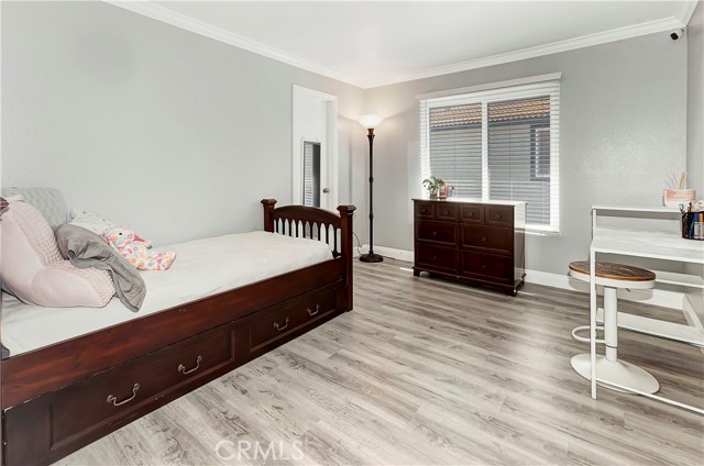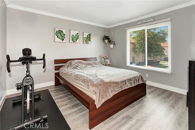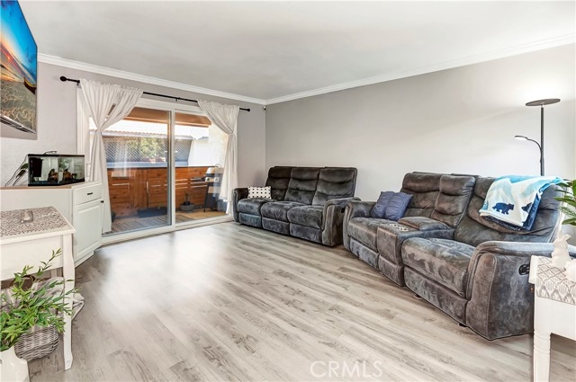 A beautiful move-in-ready condo in Corona is awaiting a new owner. This upper unit condo located in the Oakview Condominium community was remodeled two years ago when the current owner purchased it and it looks just as beautiful now as it did then. Neutral color laminate flooring throughout and neutral paint gives this unit a very clean and welcoming feeling. Crown molding and larger baseboards round out some of the details this unit has to offer. The kitchen, and open area off the kitchen, provides for plenty of countertop space and cabinets for storage. Full title back splash, stainless steel farm style sink, wood countertops, stainless steel Frigidaire appliances and walk-in pantry round out the kitchen. Both bathrooms are upgraded with tub/shower combo and a very modern look with upgraded fixtures. The unit sits within a building with three other units and all share a common water heater located near the A/C units. Each unit has their own A/C unit. There is a common laundry room area for the building and the owners provide their own washer and dryer. The laundry room is located below this unit. The community has a pool/spa area and 2nd spa within the complex. Parking for this unit consist of a one car garage with roll up door and key pad, and an uncovered parking space next to the garage. No parking permit is required for the parking space. Street sweeping takes place on Tuesdays, so no parking on the street (cul-de-sac) between 7:30AM and 4:30PM on Tuesdays. Otherwise, it's first-come-first-serve parking on the street.