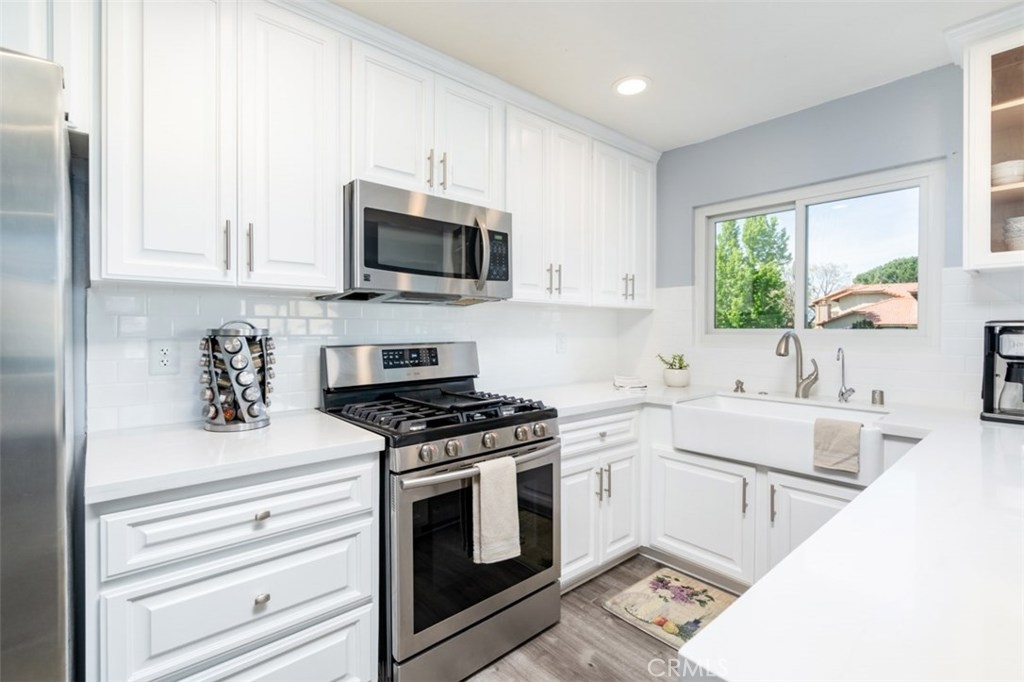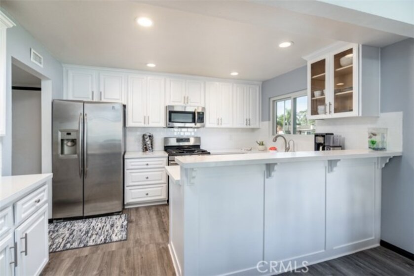 Completely Remodeled throughout! This home offers Luxury Vinyl Plank flooring downstairs with soft grey tones, and new paint. The kitchen is open to the dining and living room, and is great for family gatherings or entertaining guests. The kitchen is fully remodeled with new cabinets, oversized single basin farm sink, brand new appliances and quartz countertops. There is an enclosed patio for BBQing and relaxing just off the living and dining room, and a fully remodeled half bath downstairs with beautiful marble countertops. All three bedrooms are located upstairs. Each bedroom is spacious and perfect for a growing family! The upstairs guest bathroom has been remodeled with new flooring, and new vanity and mirror. The master bedroom is also spacious, and comes with a large walk-in closet and two private balcony's to relax and enjoy the fresh air. The master bath is partially remodeled with a new vanity. The seller recently went all-out and installed Andersen windows and sliders throughout! These windows and sliders are some of the best in the industry, as they provide exceptional insulation against the heat in the summer and cold in the winter. They also operate left to right depending on which side of the window you want open. Over $35k was spent on the windows and sliders! This is a must-see home, in a very desirable neighborhood! It is sure to impress!