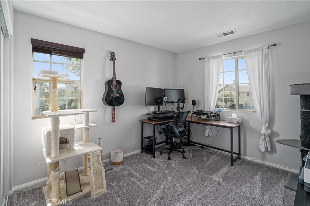 Meticulous 3 bedroom, 2 1/2 bathroom in the sought after gated community, River Road Village in Corona! In this 2 story home you'll enjoy an open floor plan with spacious kitchen offering granite countertops, stainless steel appliances, tile flooring and peninsula island which opens to the adjoining family room with a cozy inviting fireplace. Primary master suite features walk-in closet and numerous windows which allow the sunshine to illuminate the spacious room. The master ensuite boasts dual sinks, soaking tub, and walk-in shower. Conveniently located between bedrooms the upstairs laundry room makes this chore a breeze. The other two bedrooms are on the opposite side of the second floor separated by a bonus loft area which provides privacy but easy access from the primary suite. The 2 car garage offers direct access along with ample storage underneath the stairwell and attached ceiling racks. If thats not enough- home has added concrete patio areas, newer tankless water heater, and high efficiency air conditioner, ADT alarm system and Solar (leased). HOA amenities include community pool, spa, clubhouse, and park. Convenient to local shopping centers, restaurants and entertainment! Easy access to major freeways!