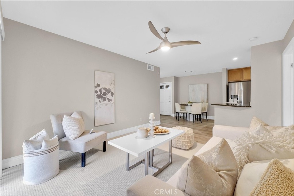 TENANT JUST VACATED 1/31/2026. Sage Canyon condo offers 2 bedrooms and 2 baths in a central Corona location! This second-level unit is nothing less than elegance throughout its 995-sq ft layout. Freshly painted neutral tones pair with newly installed cream-colored carpeting to give the single-story, open concept design a bright and inviting feel. Enjoy a seamless flow from the sunlit living room to the cozy and stylish dining area that basks in the glow of a chandelier. Granite countertops with breakfast bar seating, ample cabinetry, and stainless-steel appliances equip the home chef in the adjacent kitchen. Expansive windows spill radiant sunlight across the bedrooms, including one converted into an office with direct outdoor access. Views of your surroundings greet you as you comfort from the primary suite. Rest and relax in the privacy of the bath that treats you to a shower-tub combo. Admire the inspiring treetop vistas from the balcony as you sip your morning coffee or unwind with drinks to cap off the day. Other noteworthy perks include an in-unit laundry room, designated carport and private space parking. Convenience is moments away from your doorstep with the available amenities in the Sage Canyon Condos complex. Enjoy the pool and spa or at the basketball court and don't forget about the gym. Desirably set near the Orange County and Yorba Linda border, you’ll enjoy easy access to talk-of-the-town attractions, parks, golf courses, schools, shopping, and restaurants. Major commute routes are also nearby. Come for a tour of this beautiful home while you can!