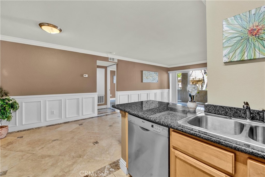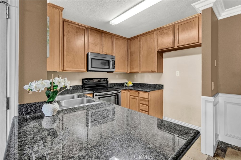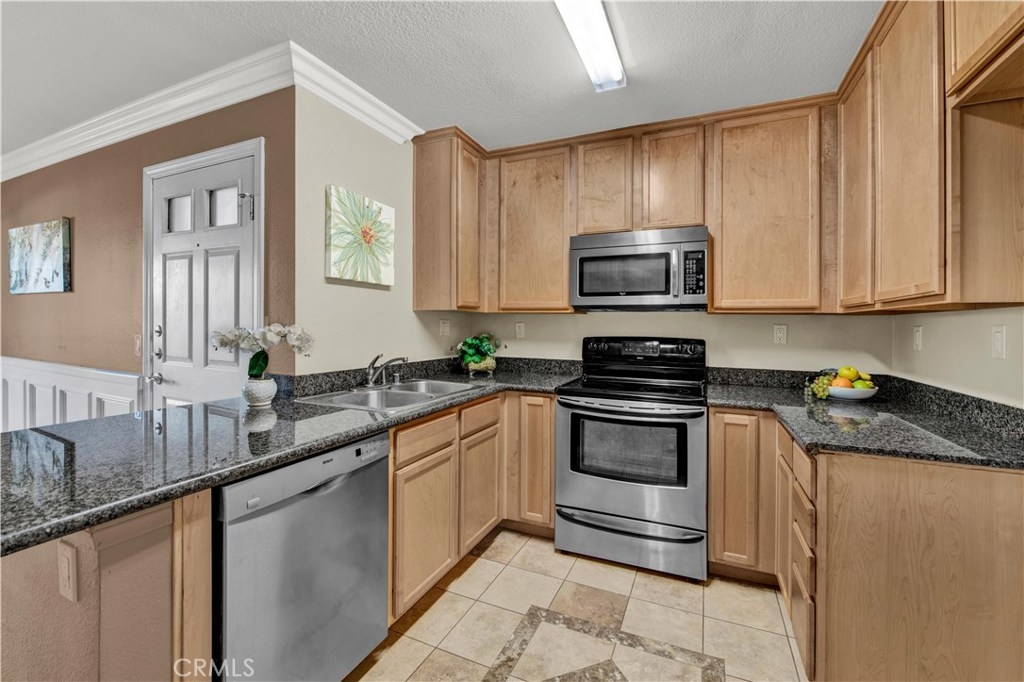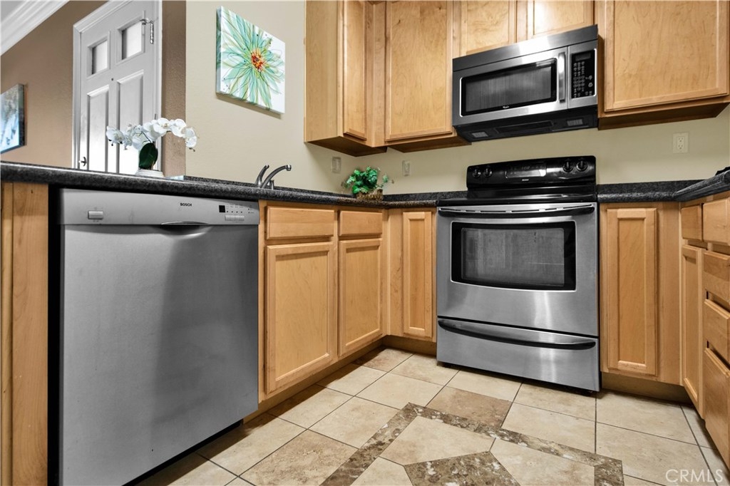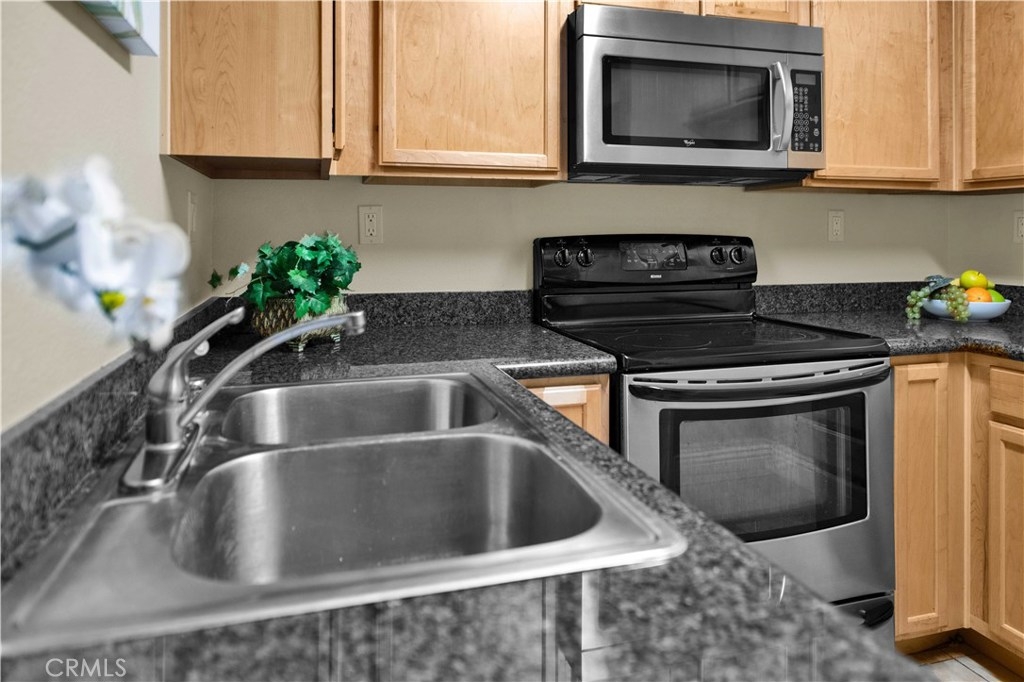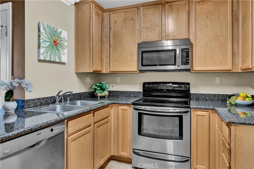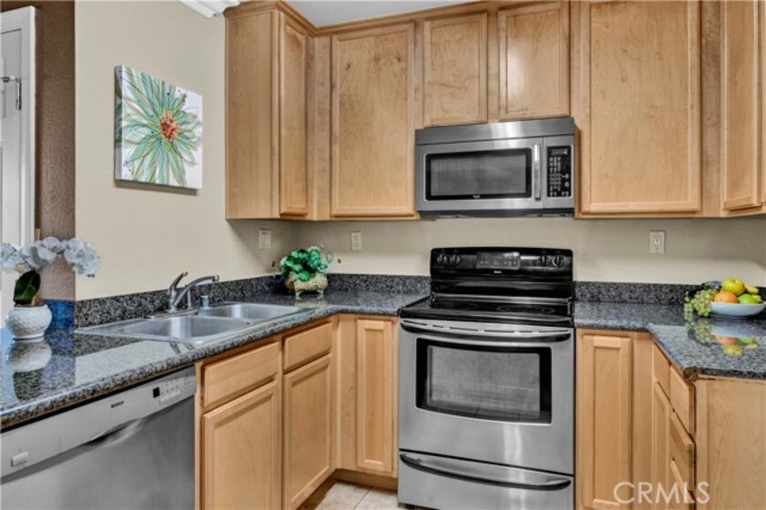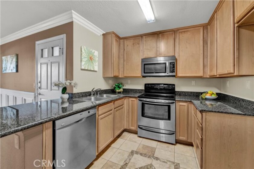 Ground floor and very nicely upgraded condo within the highly desired Sage Canyon complex features a wonderfully open floor plan, designer tile inset flooring throughout, a beautifully remodeled kitchen as well as bathroom, crown molding & designer paint throughout, a walk-in closet with organizers, interior washer/dryer, a nice sized patio with direct access, all feeding some excellent Corona schools. And since this complex is off Green River, its close proximity to Orange County makes it feel like it's almost an appendage to OC. And this particular unit has been nicely redone: Remodeled kitchen has exquisite granite counters along with elegant stainless steel appliances, stainless steel sinks, high end wood cabinetry as well as upgraded fixtures! Remodeled bath has walk-in shower w/ glass sliders and tiled walls, granite counters & designer tile flooring with insets! The Living room is spacious, has wainscoting along the walls and has an open feel to it. First floor units always sell for a premium because owners get a ground floor spacious patio, not just a small balcony. The reason why this Sage Canyon Community is so sought after is because it offers a large pool, 2 spas, private gym, basketball court, sand volleyball court, outdoor BBQ, and close to hiking trails. A very robust and active community! All of this is surrounded by gorgeous hillside landscaping, views of Cleveland National Forest, close proximity to freeways, and moments from all Orange County has to offer.