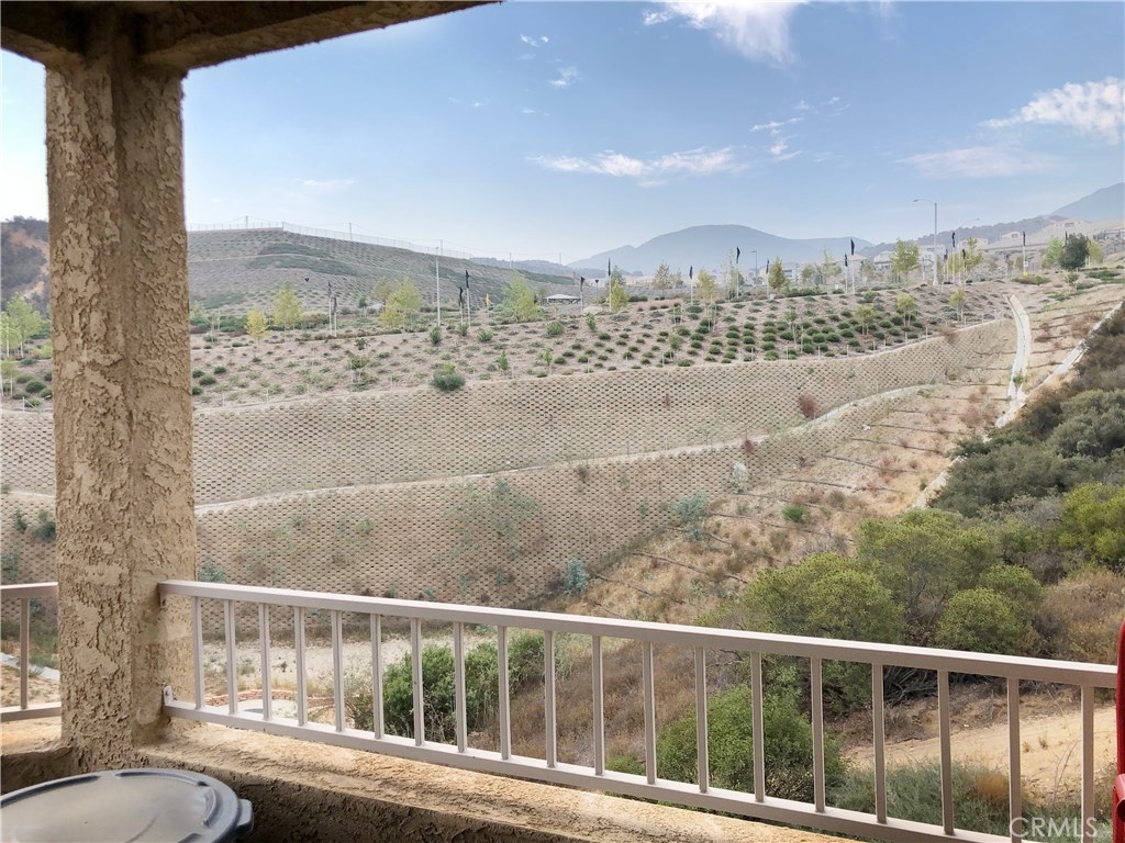 Single level, end unit, third floor condo with serene views of the surrounding hills. Unit is located in the desirable Sage Canyon Community. This unit features a Newer Kitchen with Granite Counter Tops, Stainless steel appliances, and a built-in microwave. Spacious Master bedroom with walk in closet down the hall from the indoor laundry unit. The bathroom features similar cabinets as the kitchen, with granite counter top. Association includes a large pool area, 2 spas, gym, outdoor basketball court, BBQ picnic area, water, and trash. Easy access to freeways 91FWY, 241 toll Road, 71 FWY, parks and walking trails, shopping center.