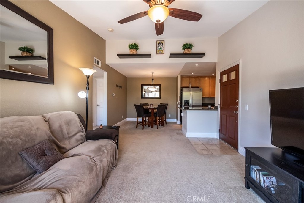 Beautiful 1 Bed, 1 bath condo is located on the 3rd floor in the quaint Sage Canyon Community. This condo offers an upgraded kitchen with granite countertops and stainless steel appliances that opens up to the living room, which leads out to the balcony. The bathroom also offers granite countertops and has plenty of counter space. The bedroom has access to the balcony which offers amazing views. All utilities are paid by the HOA except for electric. Well-maintained community with pool, 2 spas, beach volleyball, basketball, a gym, locked mailroom, clubhouse and security at night. Location is close to Metrolink, freeways, and shopping. You do not want to miss out on this well maintained condo!
