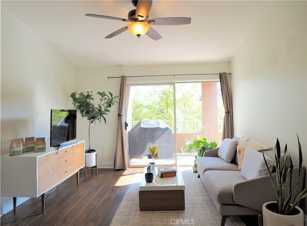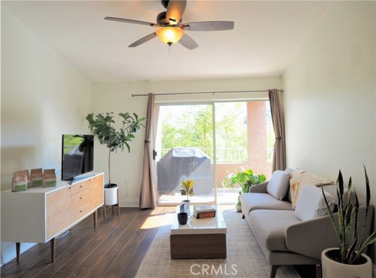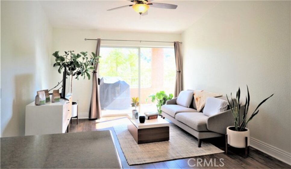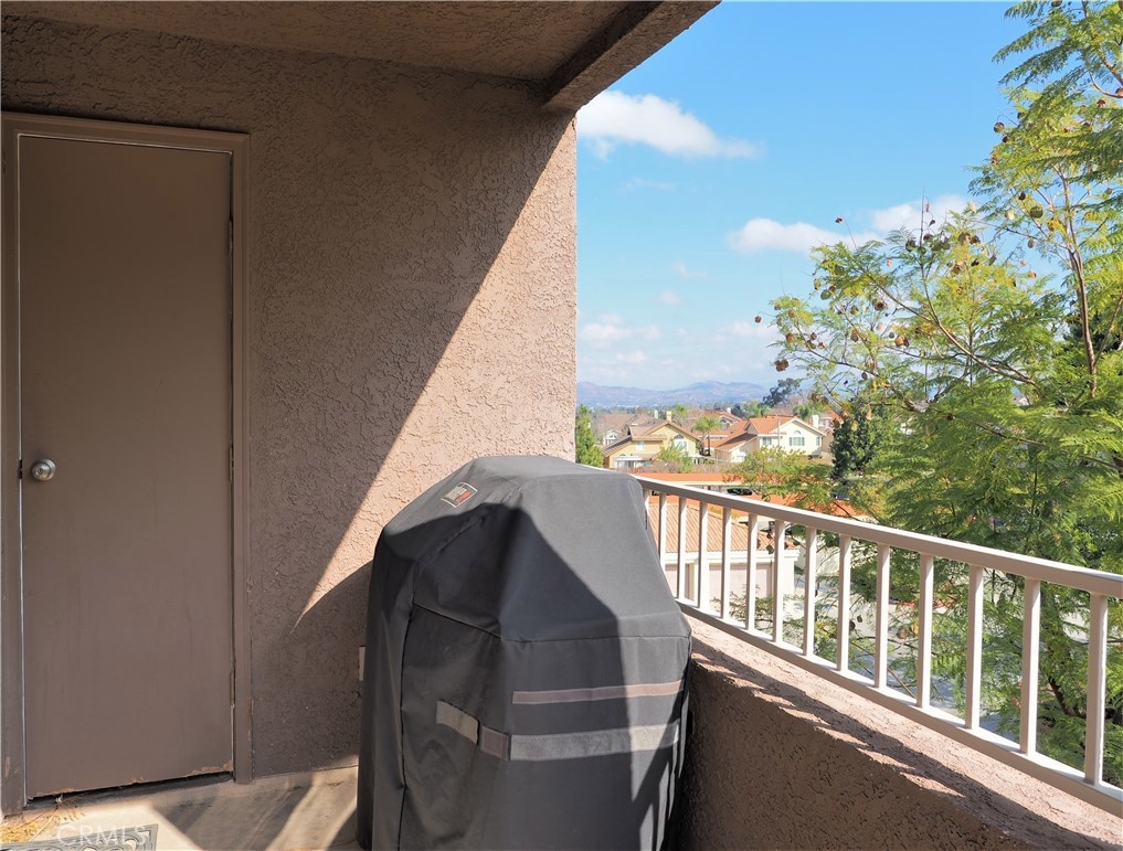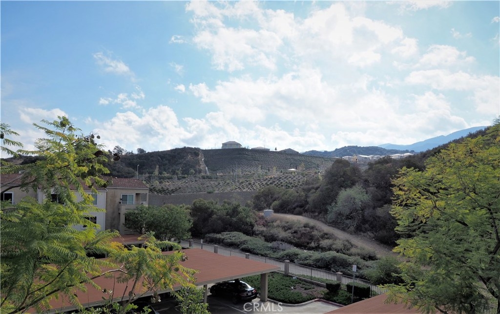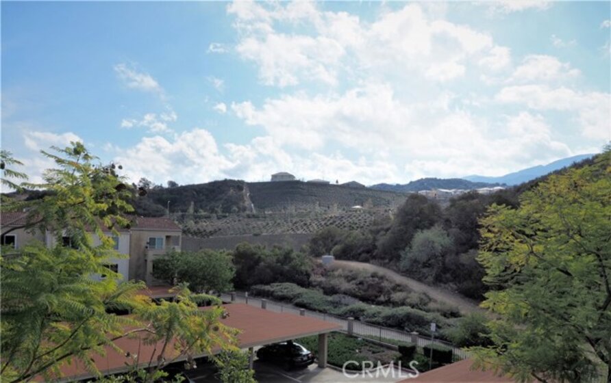 Nicely updated 1 bedroom with 1 bathroom condo on the third level with spectacular views of the rolling hills and mountains. The Sage Canyon Condo Community is within the Sierra Del Oro area of Corona. It’s located next to Orange County off the Green River Road exit. Orange County is just 15-20 minutes away. The living room’s vaulted ceiling adds volume and plenty of natural sunlight to fill in the adjoining dining area and kitchen. The kitchen has granite counters, stainless steel electric range/oven, microwave and dishwasher. Newer floors are in the common areas. The spacious patio has a storage closet and plenty of room for a BBQ grill and seating. The patio can be accessed via the living room’s sliding glass door or the master bedroom’s sliding glass door. The bedroom is spacious and bright with natural sunlight. The bedroom has carpet and a walk-in closet. The laundry closet is located in the hallway with a stacked washer and dryer. The bathroom has tile flooring, granite counters and a shower/tub. The home has central AC. The park-like setting of Sage Canyon Community includes a pool, 2 spas, BBQ area, tot-lot, basketball court, beach volleyball area, clubhouse, exercise room and security. The HOA pays for the unit's water and trash. Located near shopping centers, dining, entertainment, 91 FWY, Green River Golf Club, and more.