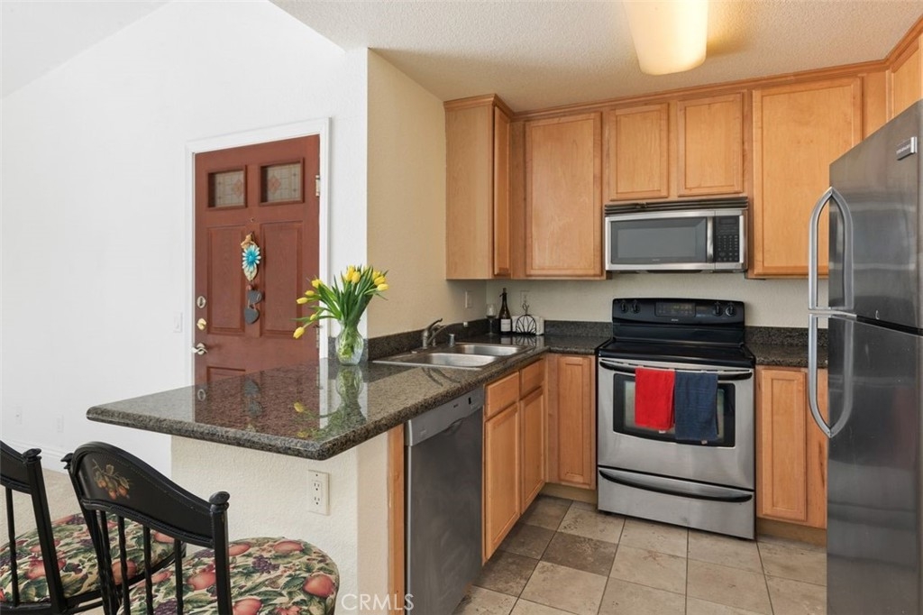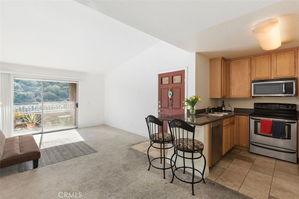 Check out the view! Beautiful, panoramic views from the balcony of this 1 bedroom, 1 bath home. Relax and enjoy the peaceful sunsets. The efficient floorplan of this home encompasses the full kitchen, large living room and dining area. The home is filled with natural light. The covered carport is conveniently located near the home, and the detached garage is a rare feature in this community. The Sage Canyon community offers a pool, gym, sport courts and clubhouse. It is also near shopping and a short distance to the freeway which is great for commuters.